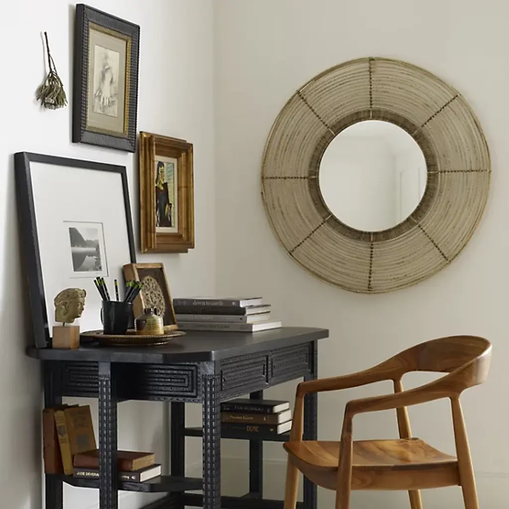 The Beehive Round Wall Mirror from Woven adds a light, relaxed vibe to any space with its open, airy design and handwoven layered rattan frame. This versatile mirror brings natural warmth and texture, making it an ideal accent for above a bed, in an entryway, or anywhere needing a soft, organic touch. Its handcrafted construction celebrates artistry and style, fitting into various settings to enhance your décor with a fresh, inviting feel.