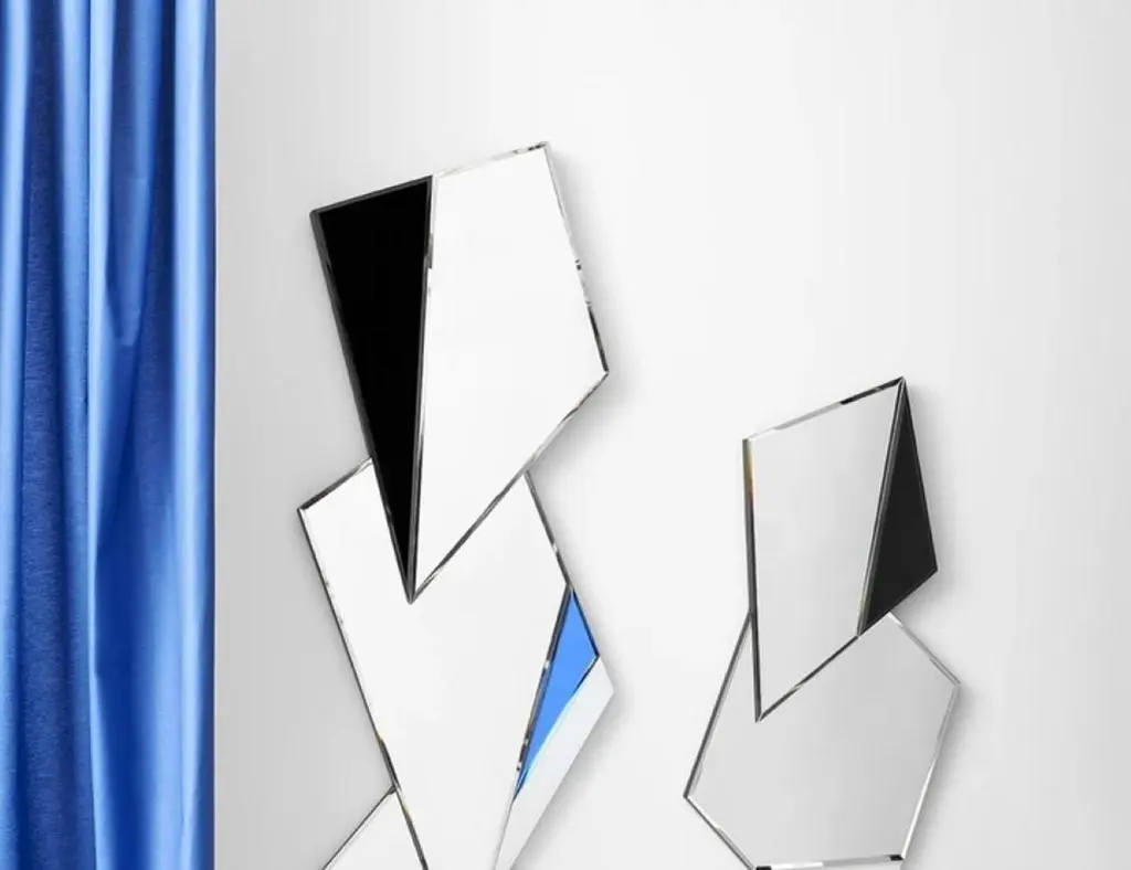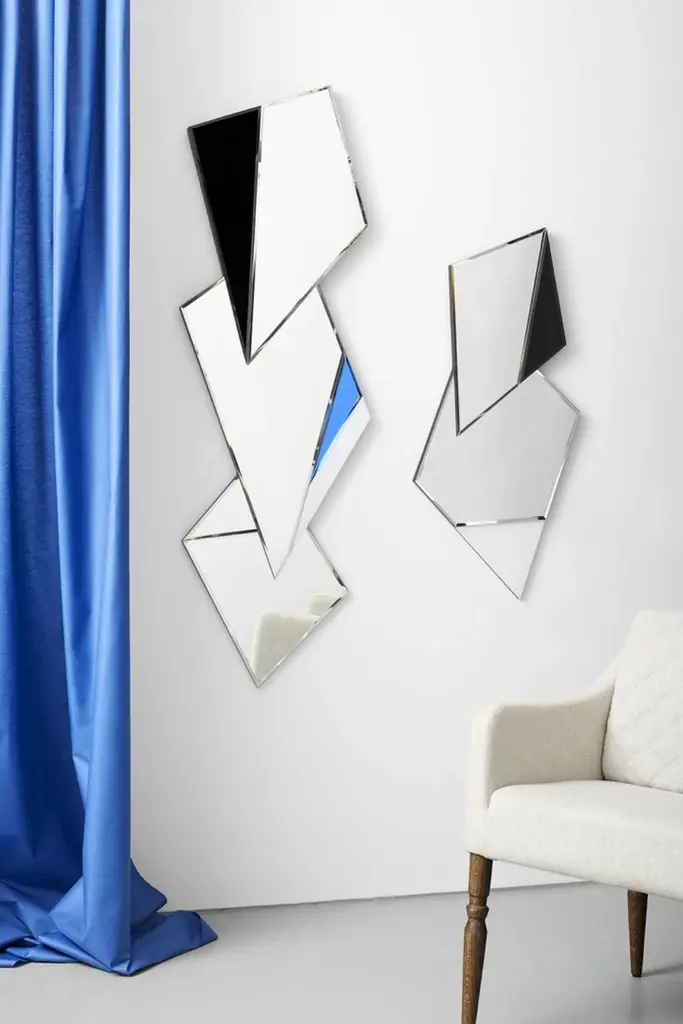 Bellatrix mirror Dimensions: W 58.2 x D 2.5 x H 132 cmMaterial: 4 mm faceted mirror on black painted MDFWeight: 8 kgBellatrix & Polaris mirrors feature searing looks inspired by the temptation of geometric lines. They are marked by tasteful colour choice and a classy but angular design. The mirrors tap into a trend informed by the principles of the 80s: big, loud, and lavish.Reflections Copenhagen, a collection of handmade decorative mirrors and Crystal pieces, finely balanced to challenge the traditional styles and shapes of todays’ homes by adding new dimensions and possibilities to interior decorating. Julie Hugau and Andrea Larsson, inspired by the graphic expression of Art Deco, the vast contrasts of the 1980s and the opportunity to explore the delicate materials that the mirrors are made of, combined their visions and the start of Reflections was a fact. The collection sums up their perspectives of how to provide new expressions through strength and form, the mirrors are designed with a strong visual structure to create a contrast of light and reflections through non-traditional mirror images. A concept built on Julie’s flair for design and production, Andrea’s eye for interior and colors together with their shared vision of creating a product that unites art and decor. Remember, everything in your life is a reflection of a choice you made. If you want a different result, make a different choice Welcome to the world of Reflections.The beauty of craftmanship All Reflections Copenhagen products have been individually hand produced with unique artisan techniques. All the irregularities and inconsistencies that you may find are part of its unique handcrafted character and beauty.“We feel very privileged to be able to do exactly what we want to and to work with each other; the exchange of energy and creative ideas is constant and what drives the brand forward”Julie Hugau & Andrea Larsson.