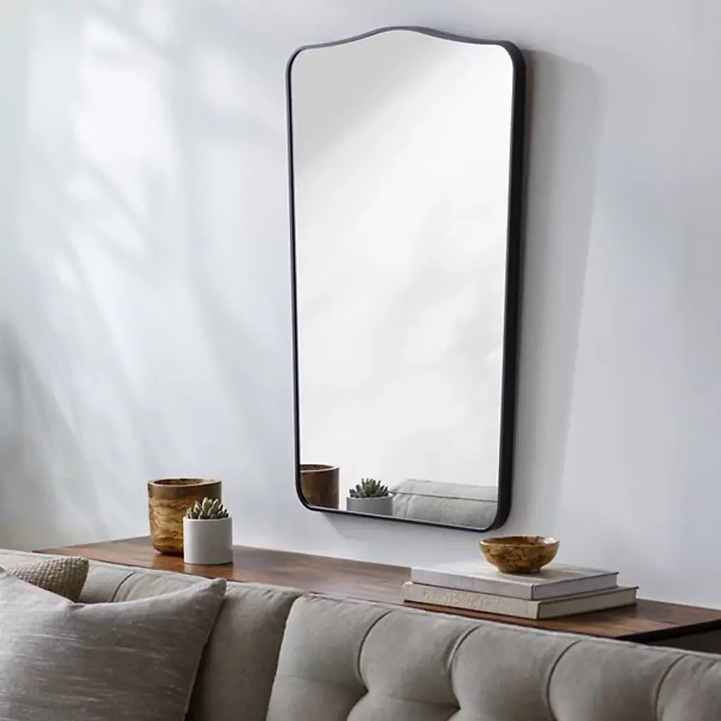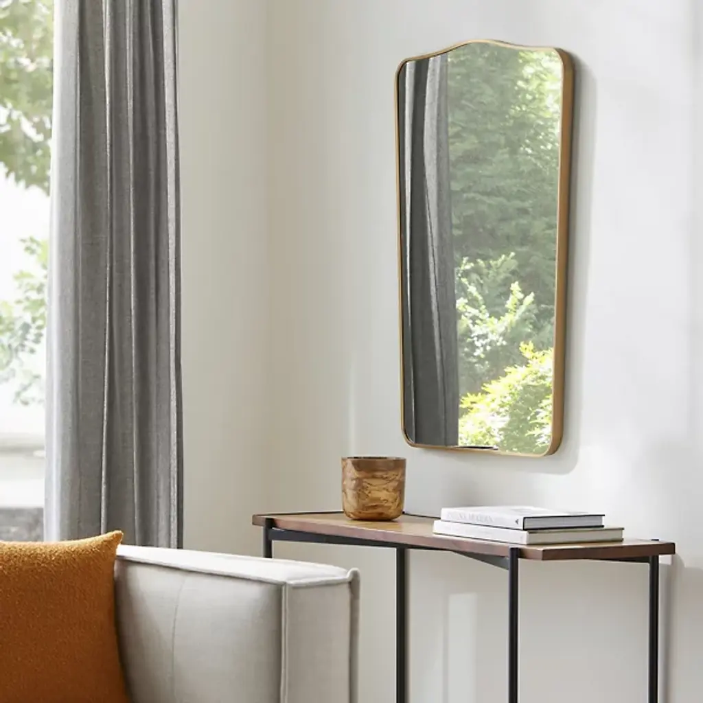 The Bellona Tapered Wall Mirror from Surya challenges traditional mirror design. Its brushed aluminum frame tapers gracefully, forming a distinctive outline. The arched top adds a soft contrast to the linear form, bridging modern and classic aesthetics. Mounted vertically, this mirror becomes a functional art piece, intriguingly playing with light and space. The Bellona Tapered Wall Mirror transforms surfaces into compelling focal points.