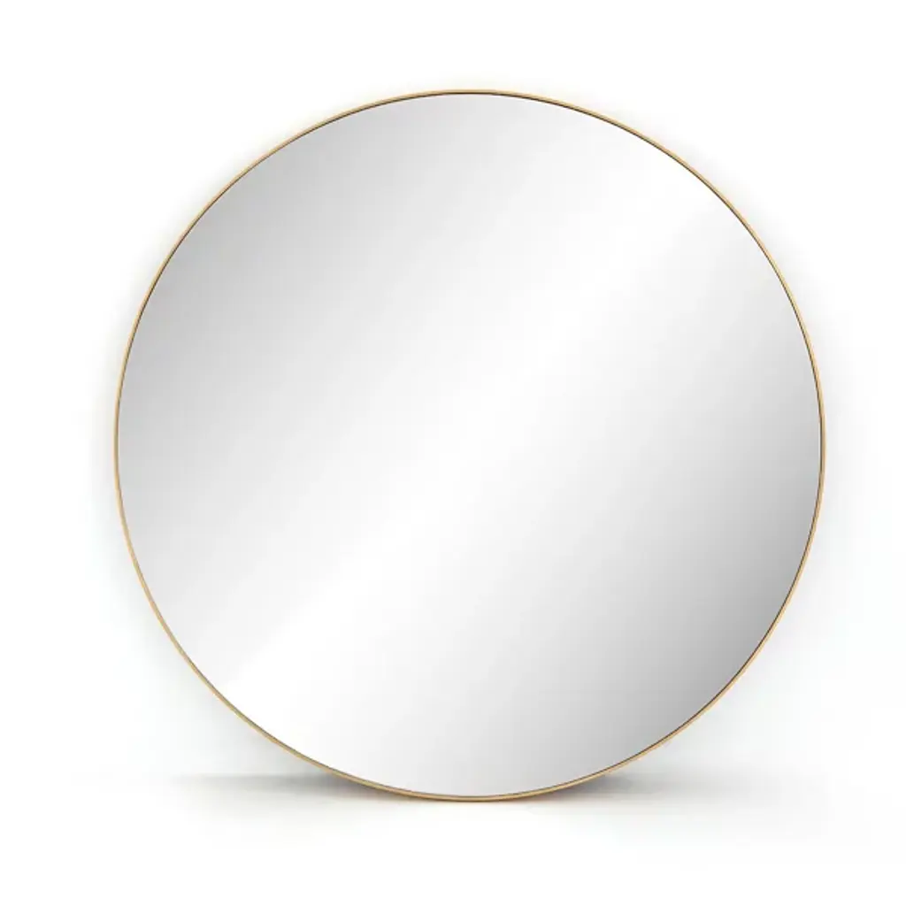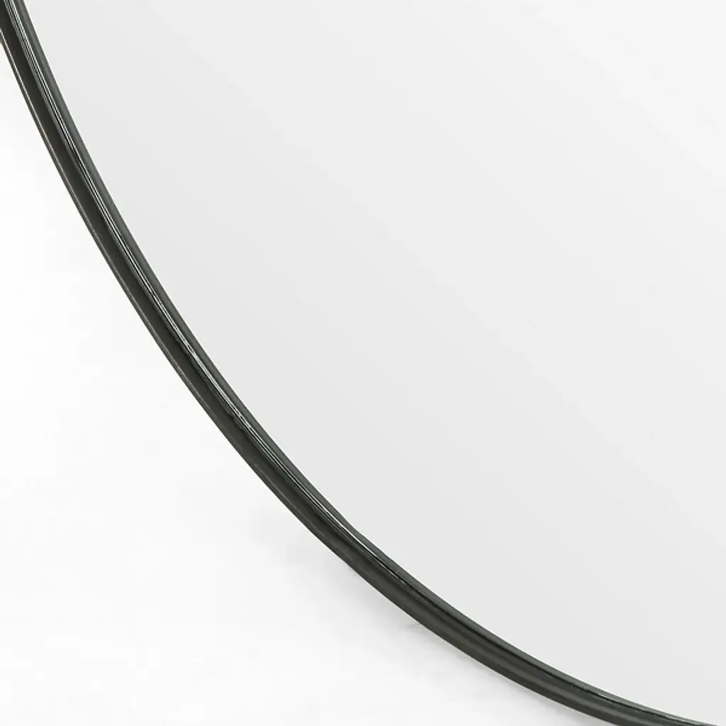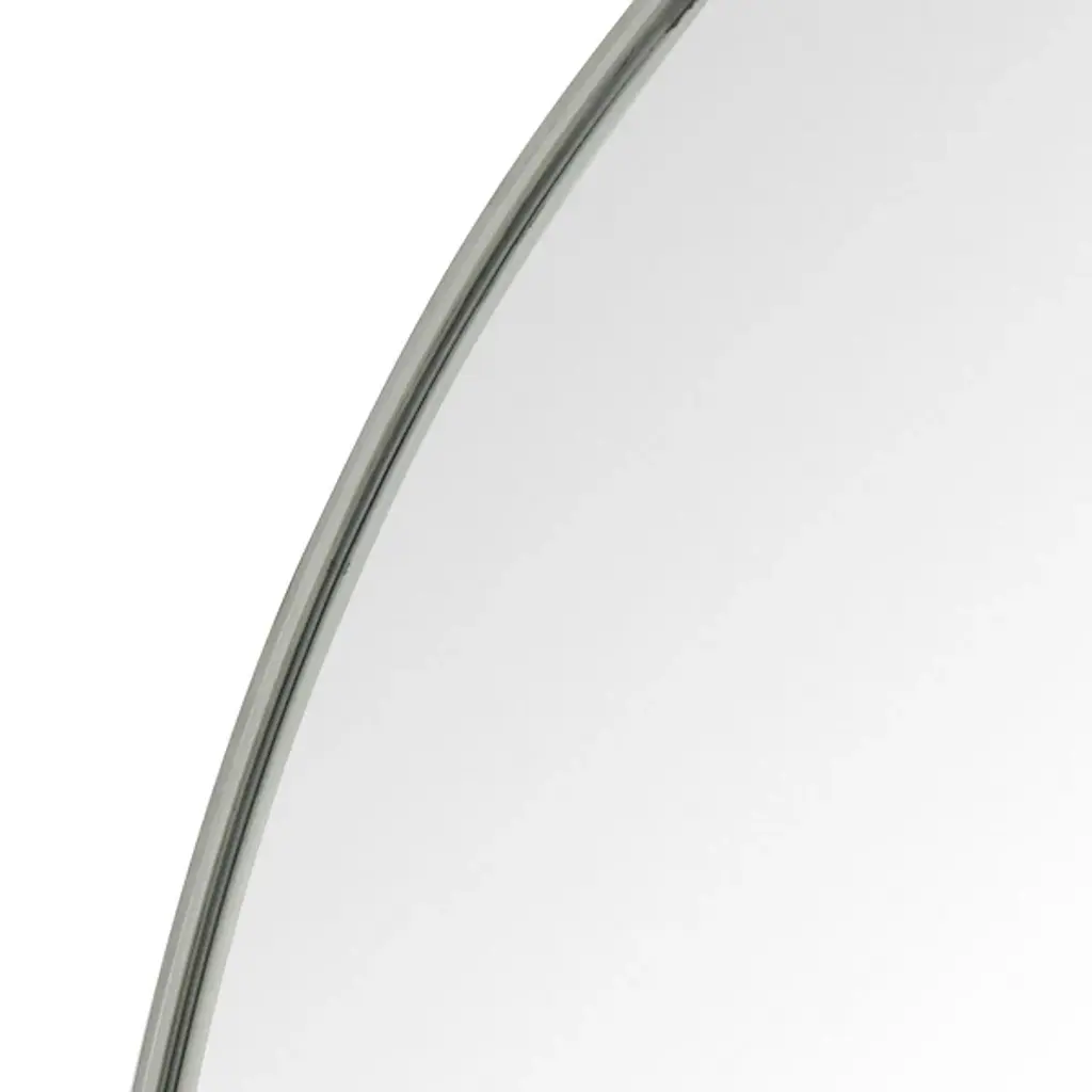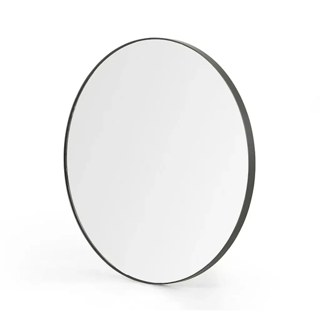 The Bellvue Round Wall Mirror by Four Hands embodies elegance infused with a modern flair. Its rounded iron frame features a subtle texture, providing a tasteful backdrop for the pristine mirrored glass, which brightens and enlarges any room it adorns. Equipped with a mounting hook for secure suspension, the mirror offers versatility in placement and contemporary sophistication, providing a stylish addition to any space.