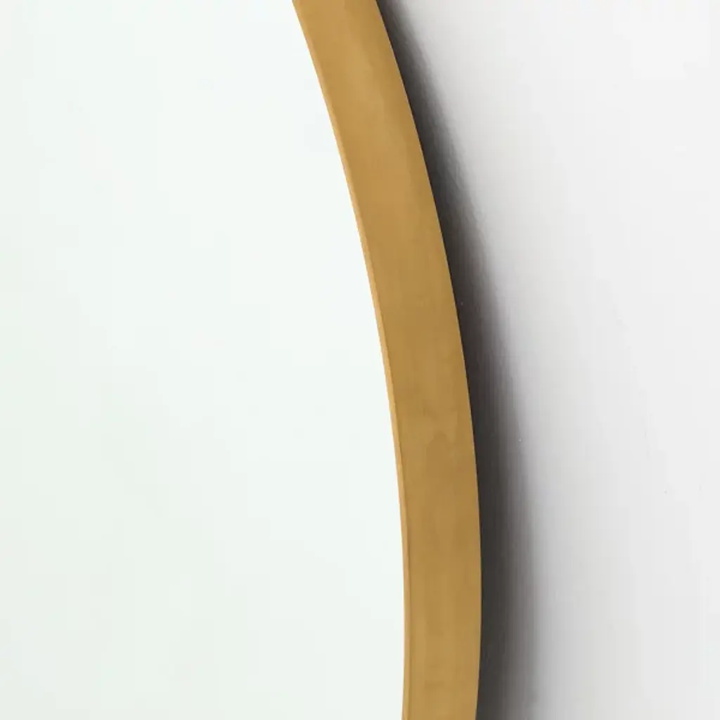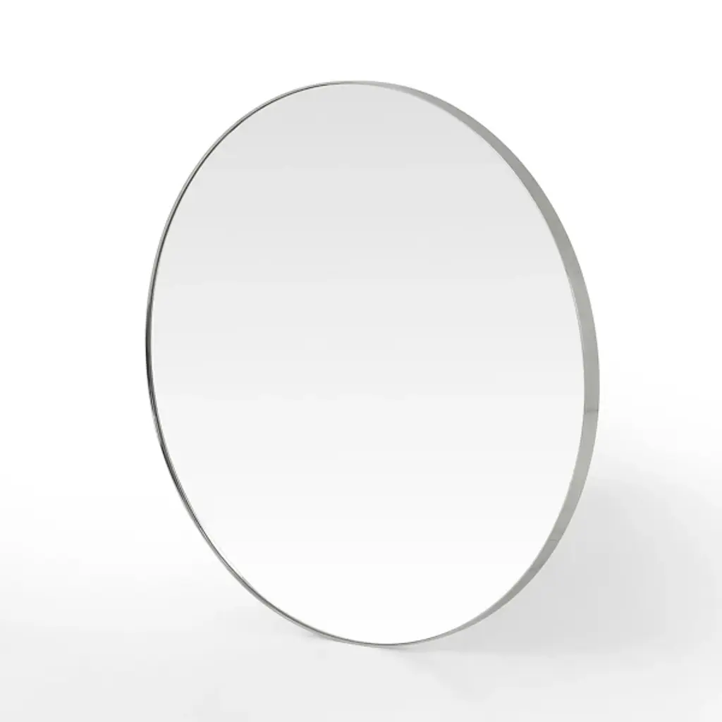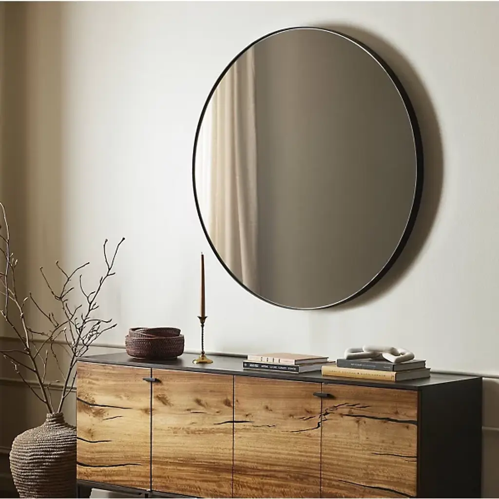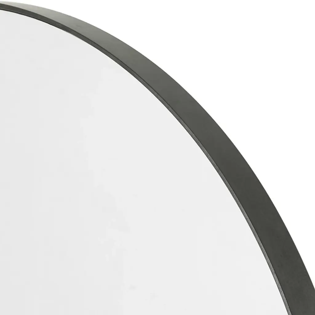 The Bellvue Round Wall Mirror by Four Hands embodies elegance infused with a modern flair. Its rounded iron frame features a subtle texture, providing a tasteful backdrop for the pristine mirrored glass, which brightens and enlarges any room it adorns. Equipped with a mounting hook for secure suspension, the mirror offers versatility in placement and contemporary sophistication, providing a stylish addition to any space.