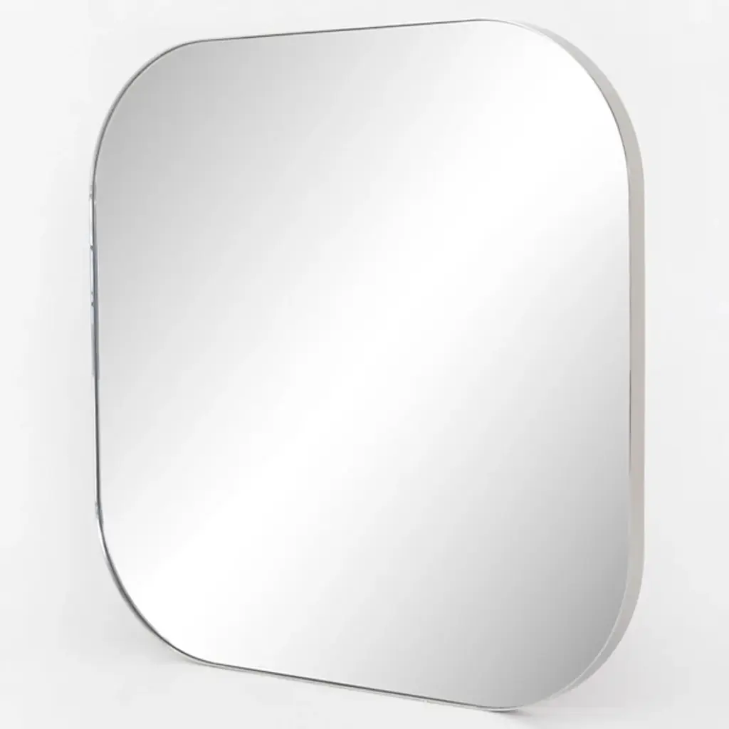 The Bellvue Square Wall Mirror from Four Hands delights with a simple blend of elegance and modern design. An angular iron frame surrounds pristine mirrored glass, showcasing a subtle texture that complements and enlarges any room it graces. Complete with a mounting hook for secure hanging, this mirror offers flexible placement while adding a touch of contemporary character to its surroundings.