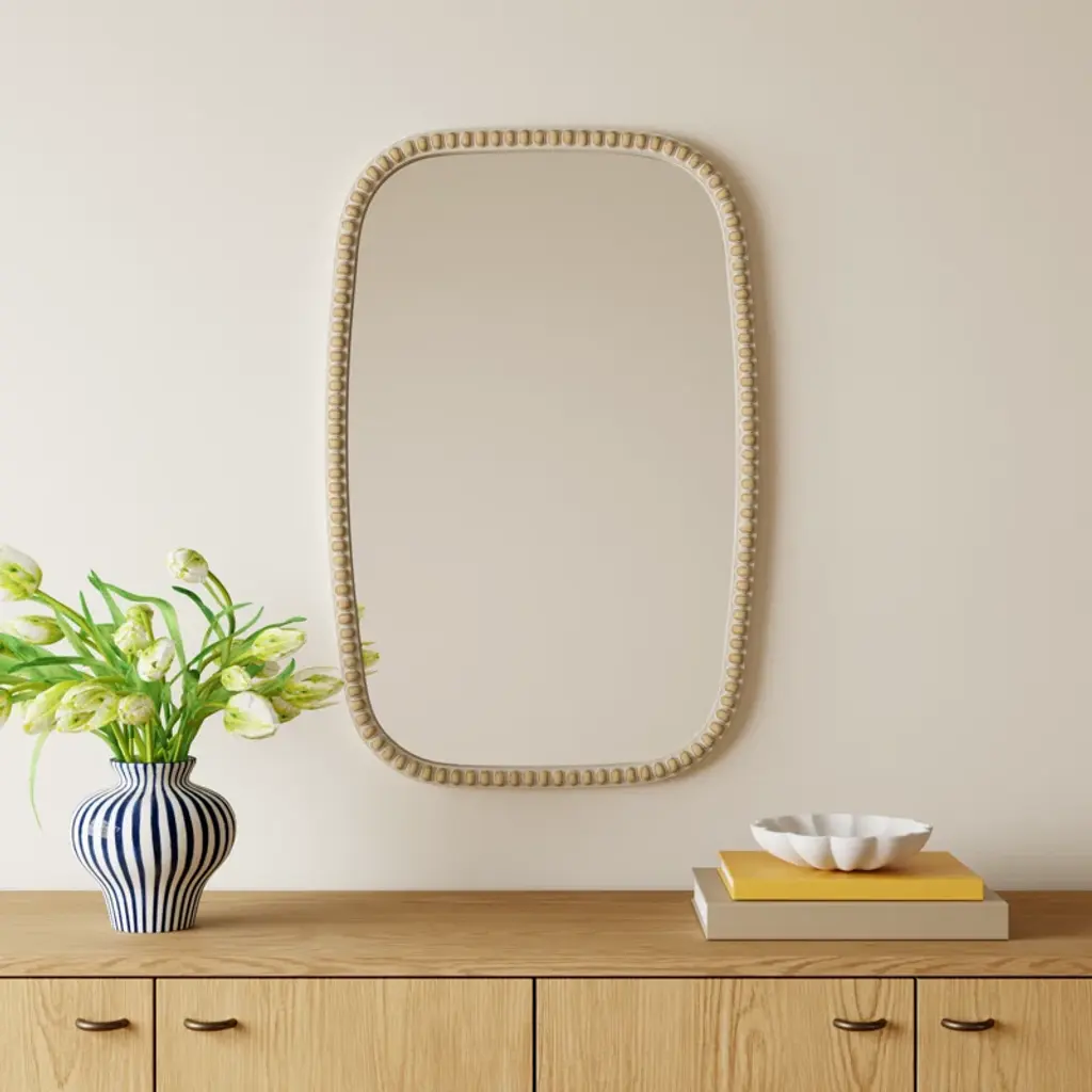 Add a touch of elegance to your home with this wall-mounted accent mirror. Designed with a horizontal and vertical orientation, it's perfect for any room in need of a touch of sophistication. The closed-corner frame is crafted from engineered wood, giving it a timeless appeal. Designed for residential use, this single-layered, rectangle-shaped mirror is suitable for dry locations. So, go ahead and elevate your space with this versatile and classic piece – it's a reflection of your great taste!