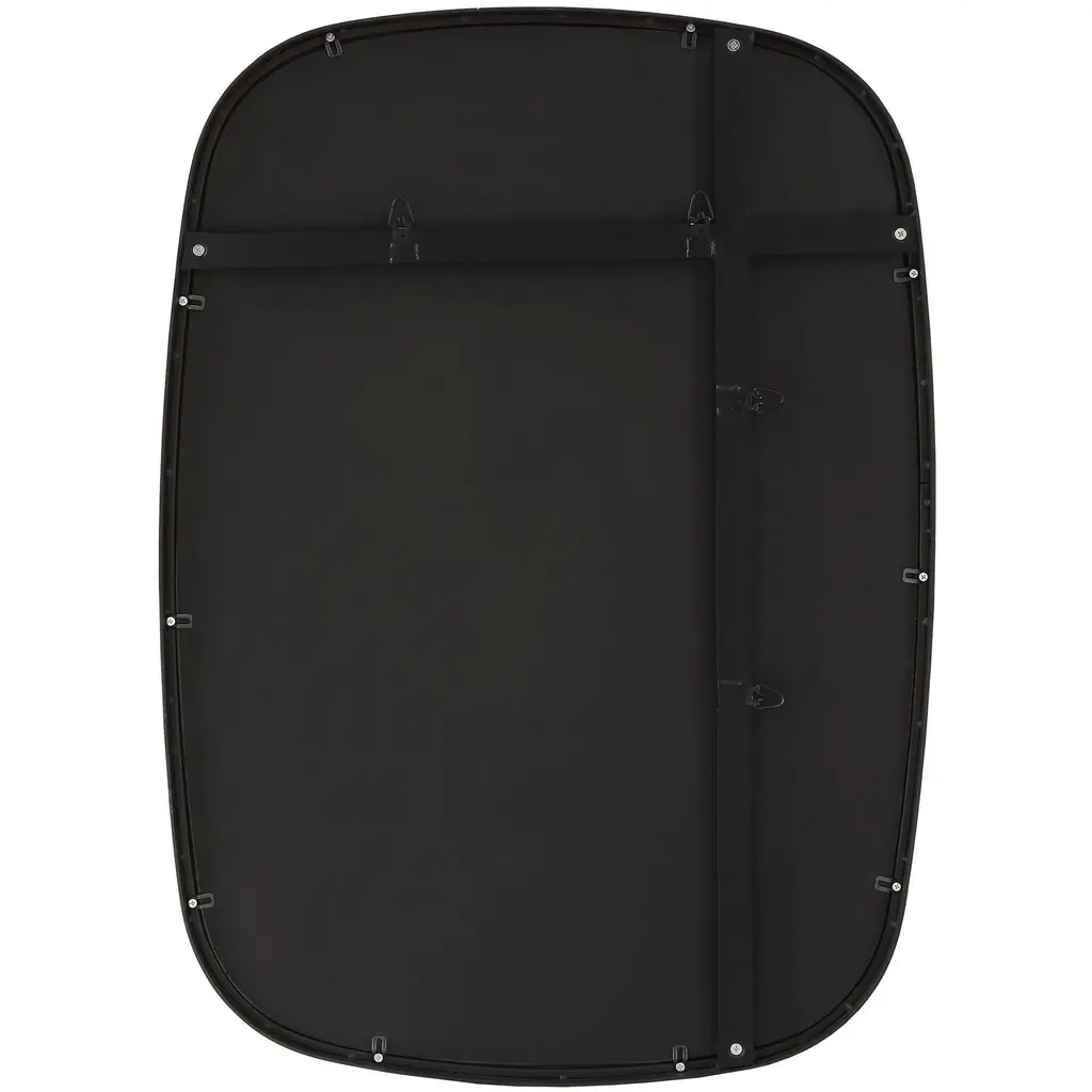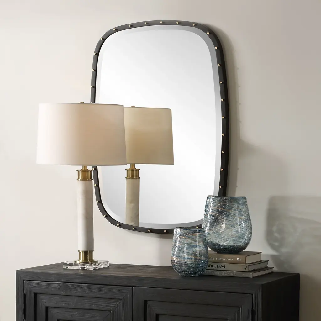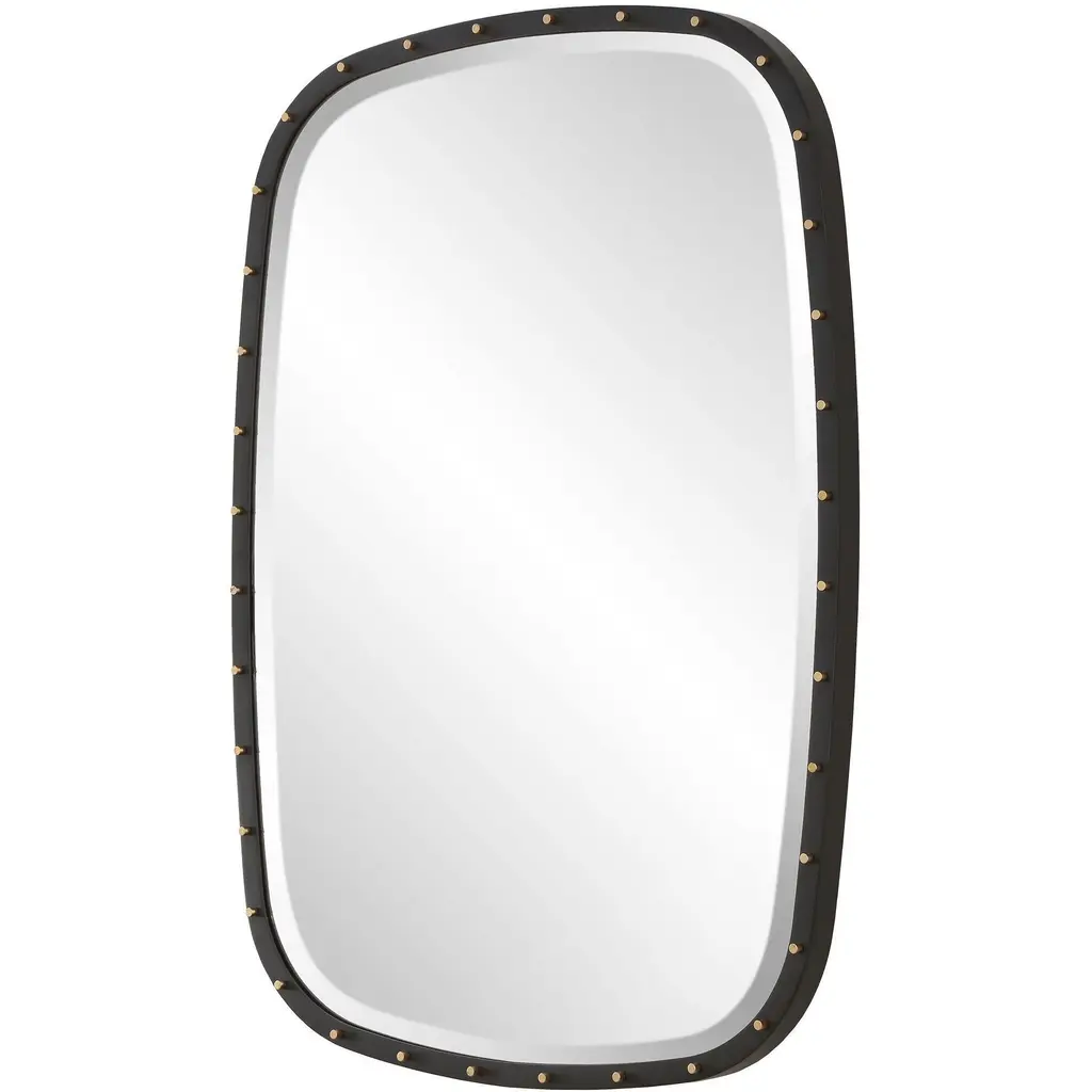 Industrial Chic Meets Modern Sophistication In This Mirror's Design. The Matte Black Iron Frame, Accented With Plated Brass Screw Caps, Adds A Touch Of Urban Style. May Be Hung Horizontal Or Vertical.