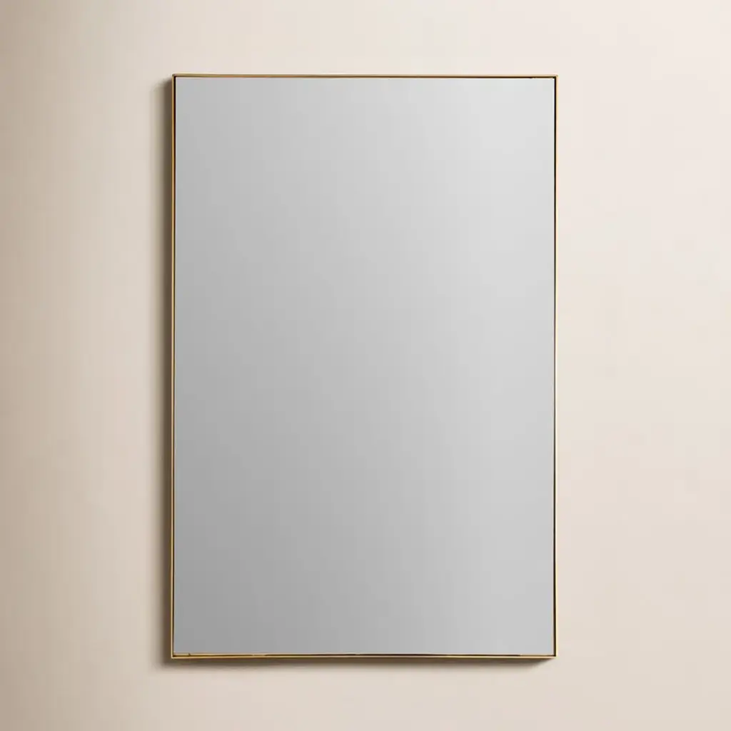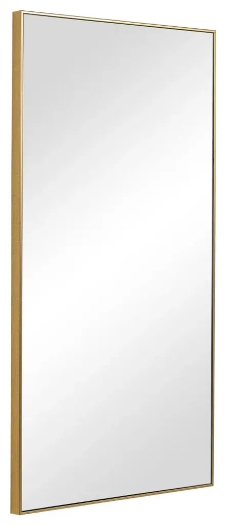 Contemporary style meets clean lined design with this sophisticated and stylish Mirror, that comes with a rectangular silhouette. Encased with a sleek polystyrene frame for lasting durability, it is accented with a gold finish. This piece arrives with wall mounting hardware to help make installation a little easier.