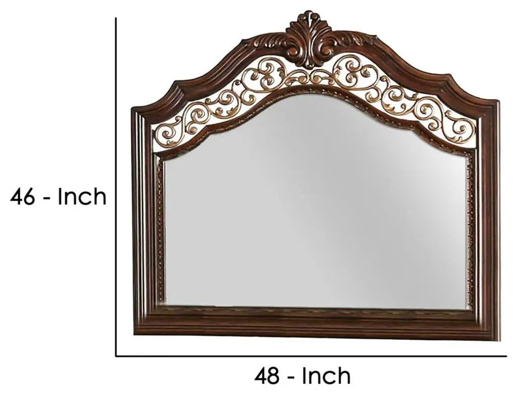 Benzara Bm239800 Molded Wooden Frame Mirror With Ornate Detailing, Brown