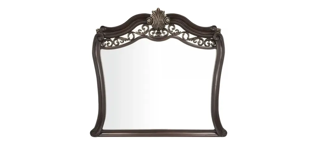Bring home this transitional style mirror and enjoy the charm it adds. It features a wooden molded encasing mirror with an ornate detailing that brings an enchanting charm while complementing your dresser very beautifully. This design includes pre attached mounting hooks on the back that allow you to hang it up right away.