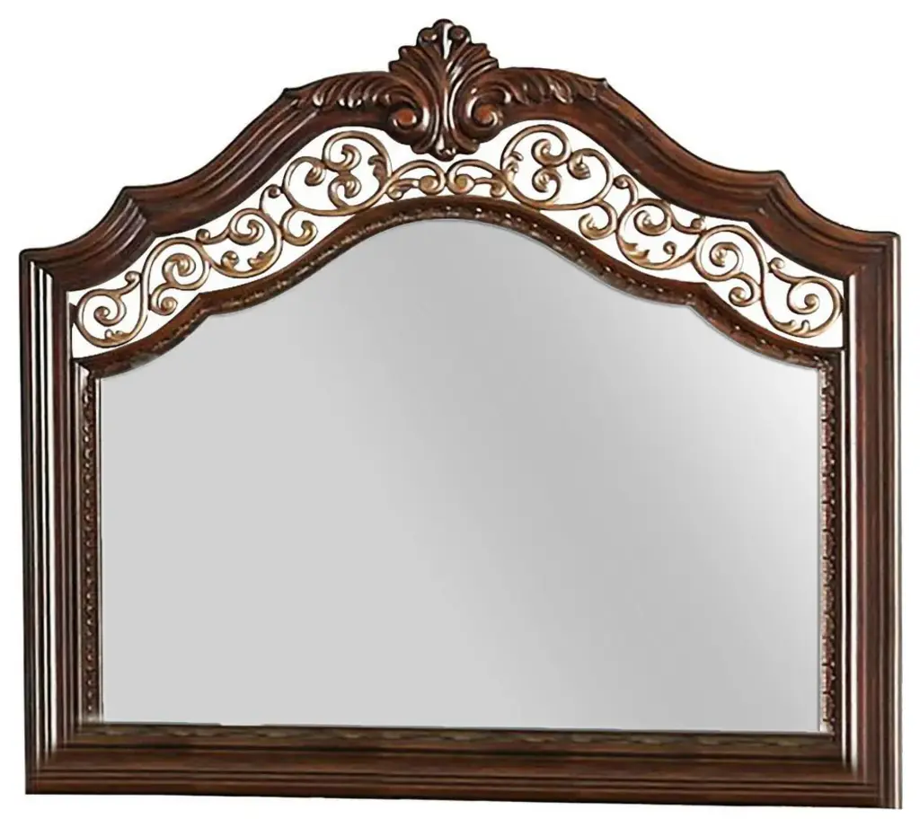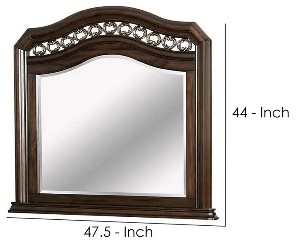 Benzara Bm241814 Wall Mirror, Camelback Top Wooden Molded Frame, Espresso Brown