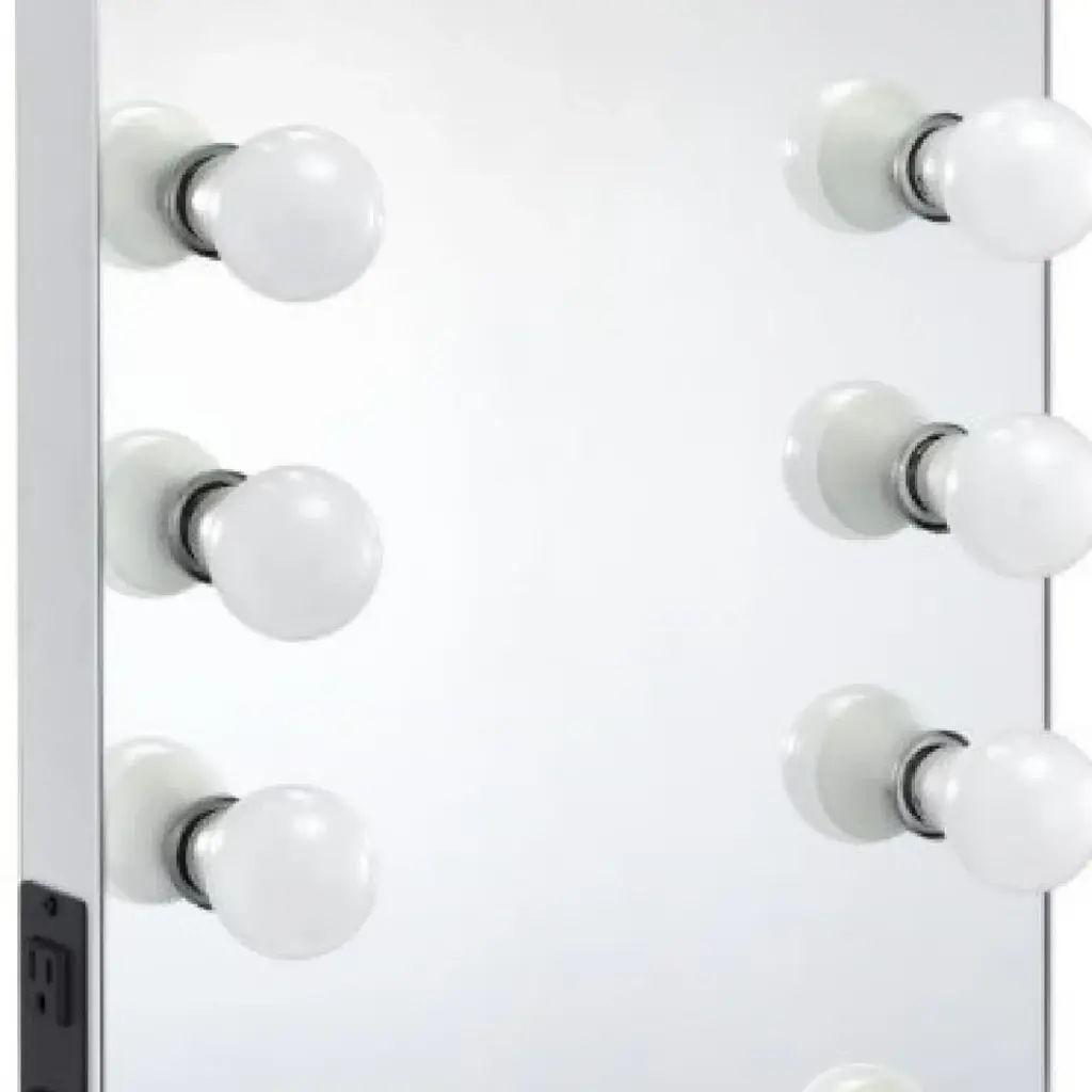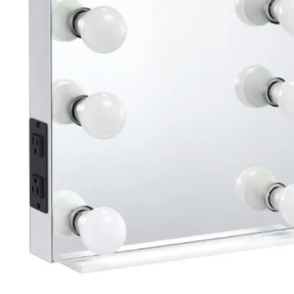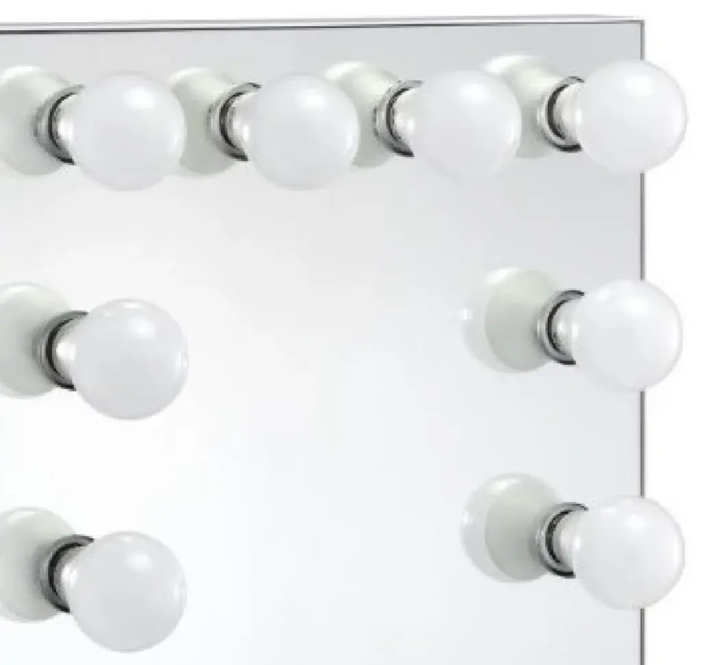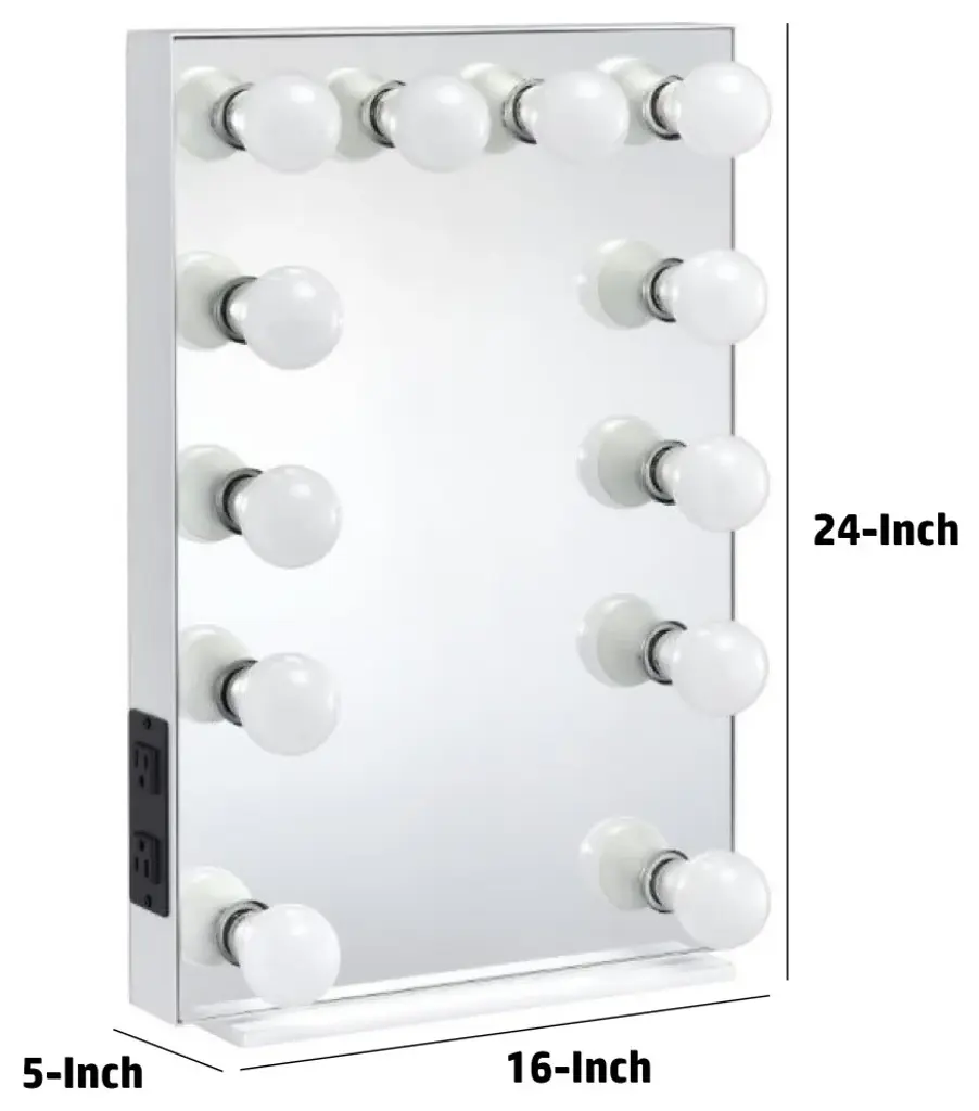 Benzara Bm274649 Modern Lighted Mirror, 2 Power Outlets, 12 Bulb Sockets, White