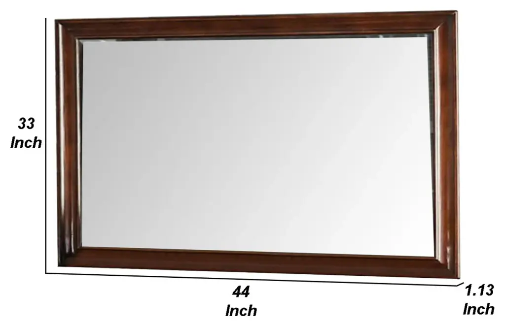 Benzara Bm276345 44" Wall Mirror, Molded Trim, Rectangular Frame, Cherry Brown