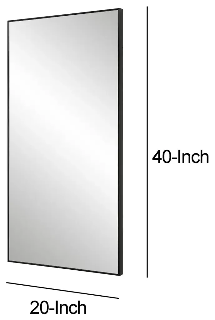 Benzara Bm277041 40" Wood Wall Mirror, Rectangular Thin Frame, Black