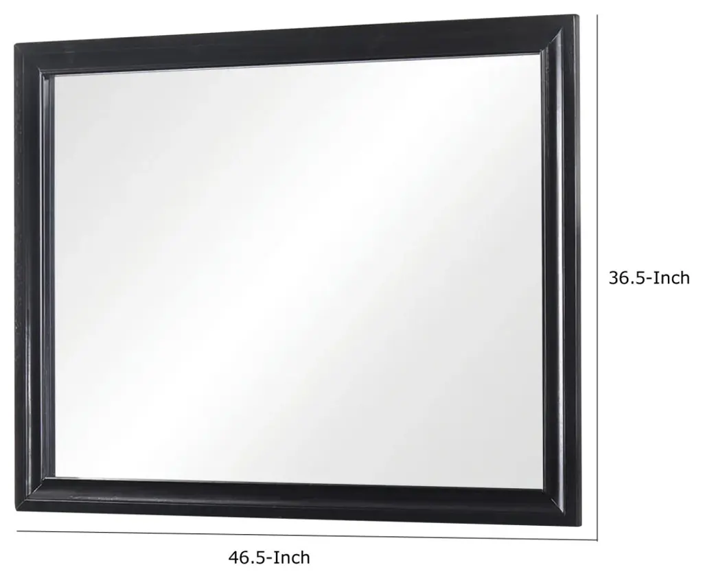 Benzara Bm280342 47" Wood Mirror, Landscape Frame, Classic, Black