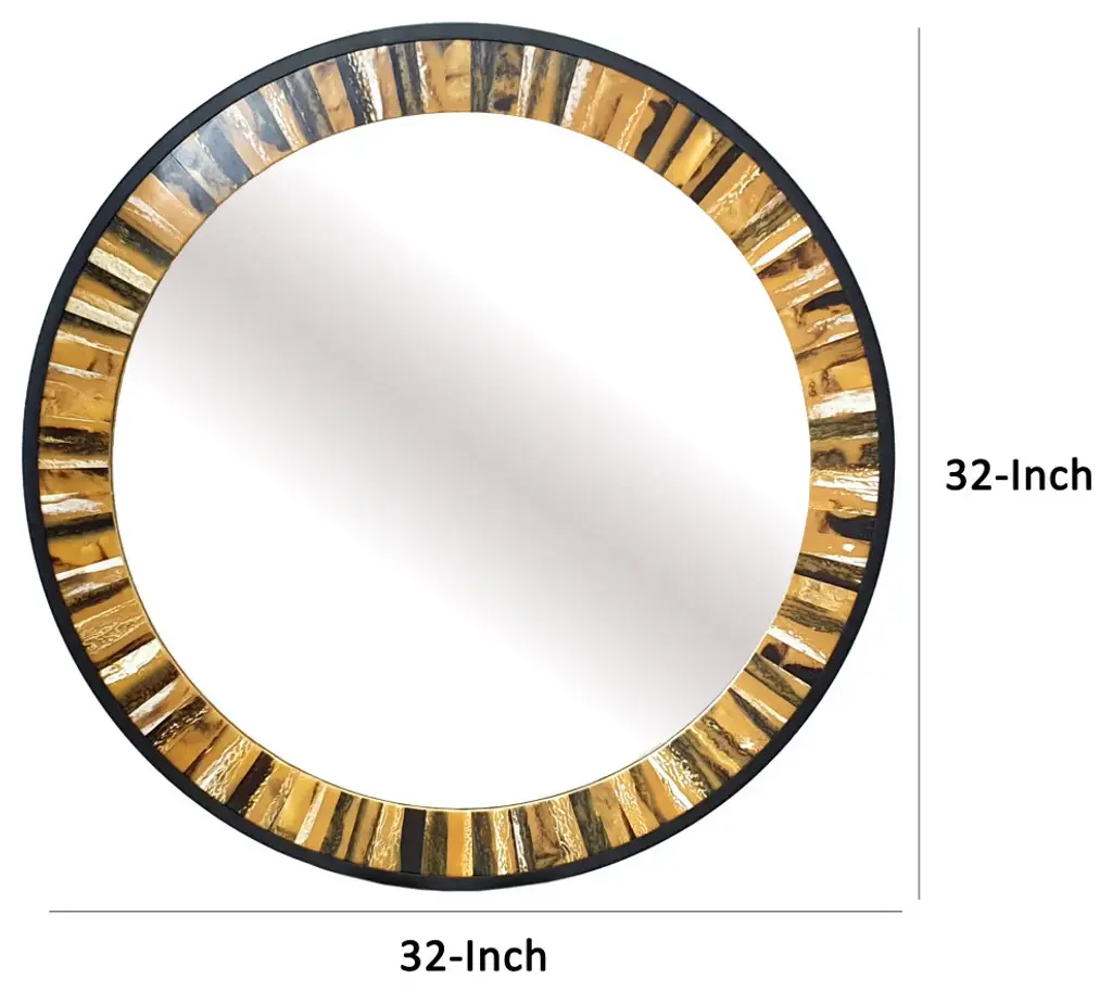 Benzara Bm285530 32" Accent Wall Mirror, Round Metal Frame