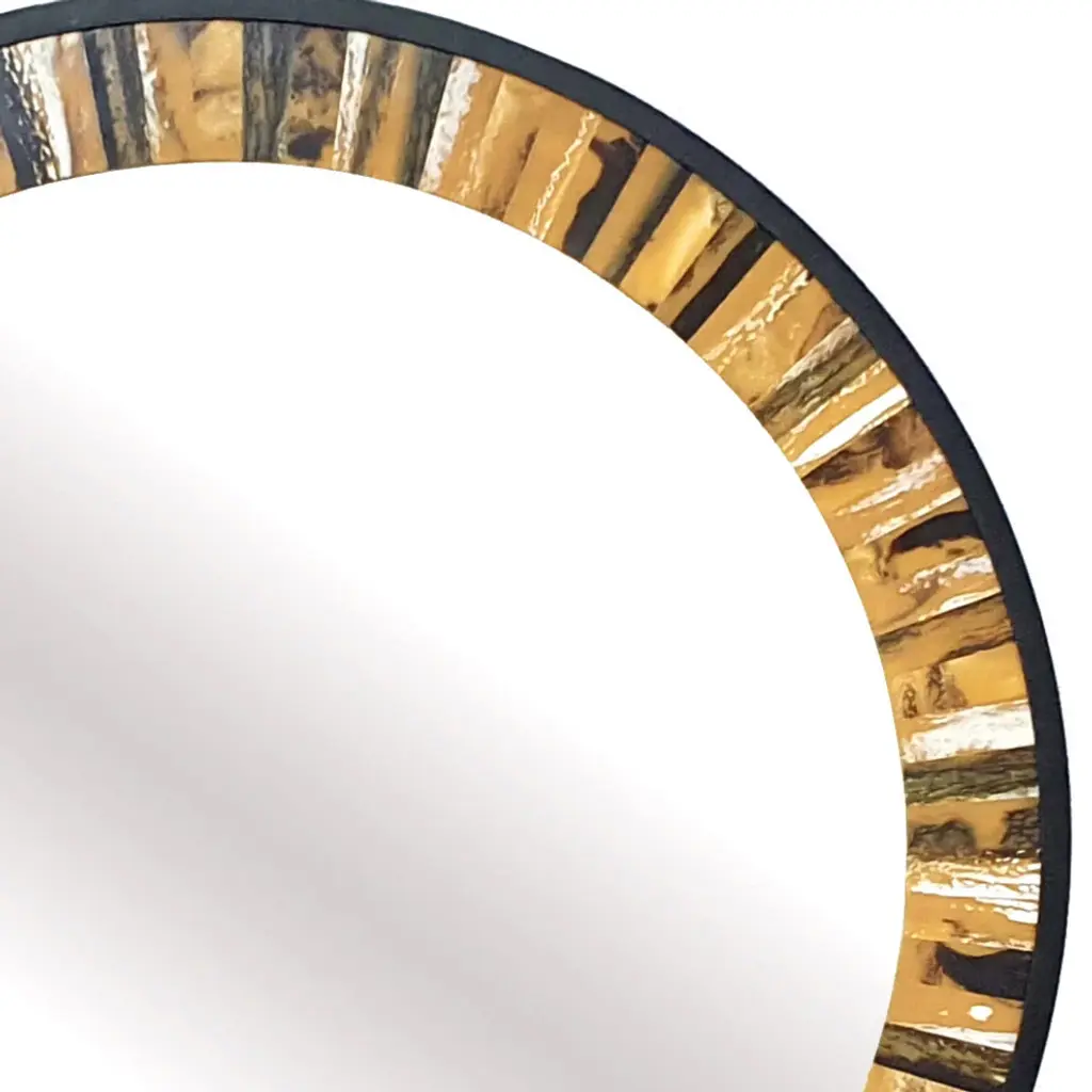 Unique in design and easy on the eyes, this wall mirror brings vibrant colors and a striking accent to any contemporary home. Encased in a resin frame, it has agate print all around its edges for a creative, artistic sense of stunning brillance. With easy to use mounting hardware, it can be hung effortlessly on the walls of your living room, lounge, or study for an unforgettable new aesthetic