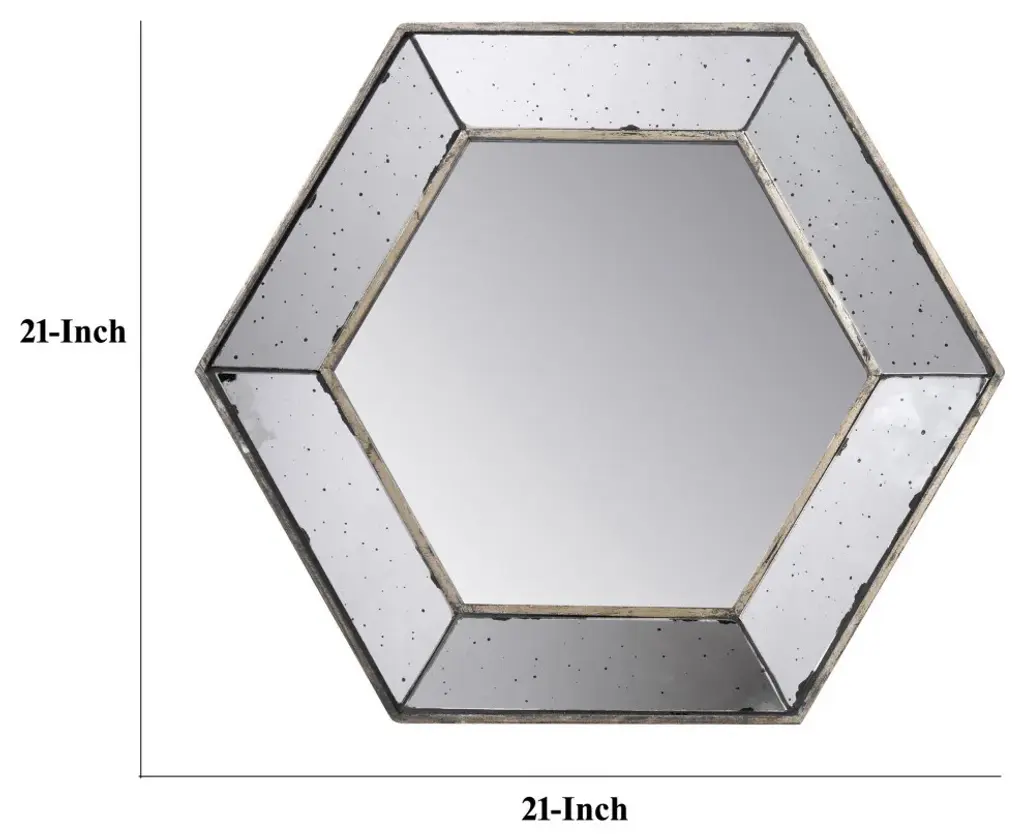 Benzara Bm286130 21" Wall Accent Mirror, Raised Tray Edges, Hexagonal Mirror