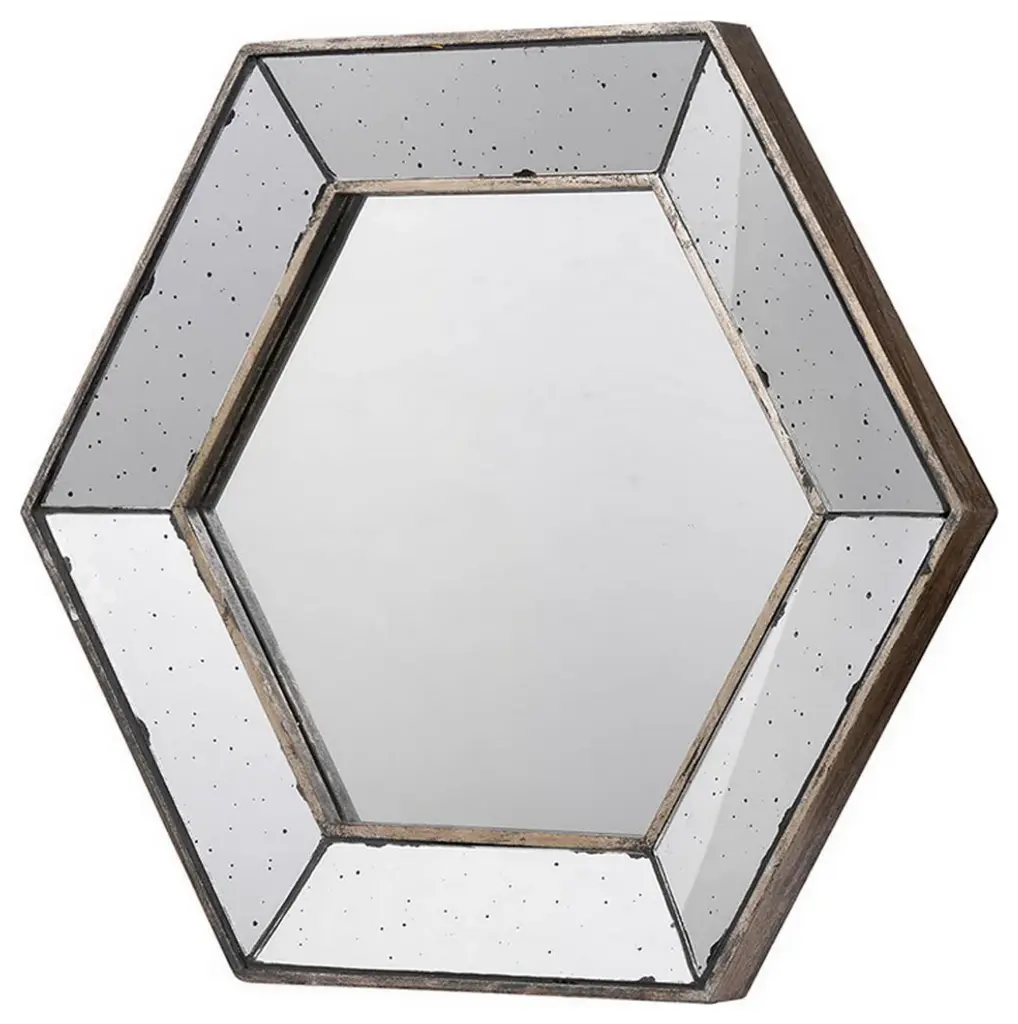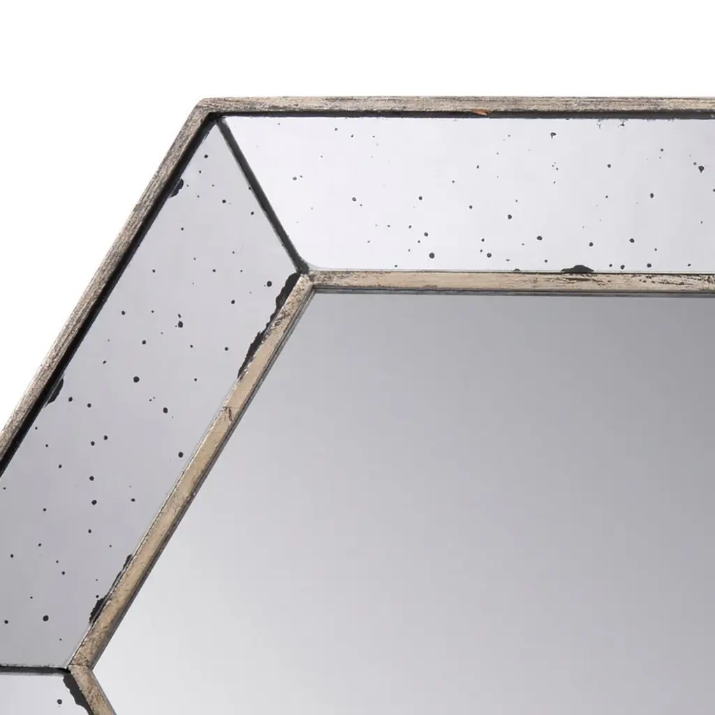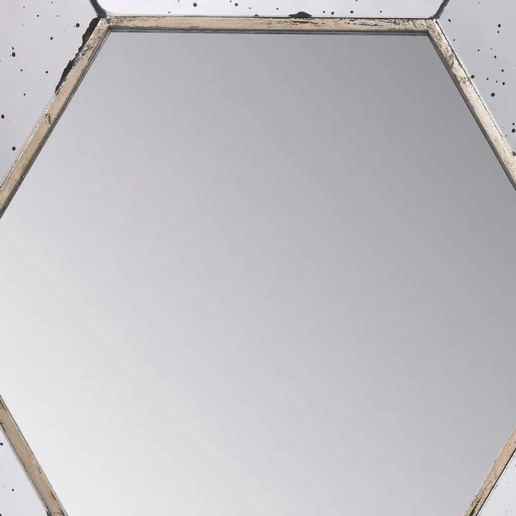 Dazzling with an artisanal touch and a modern design, this hexagonal wall mirror joyfully adorns the walls of your living room, foyer, lounge, entryway or bedroom. A clean and classic silhouette is embellished with speckles all across the frame, amounting to a masterful accent piece that draws clamor towards its simple, tasteful beauty. Check our Filo collection for variations