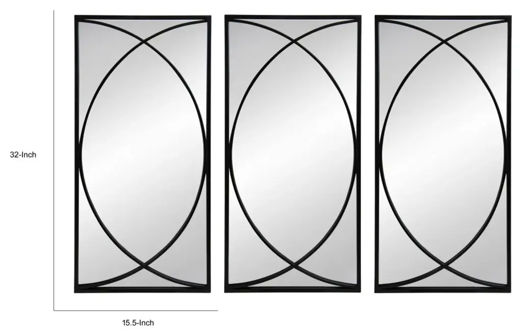 With both a distinctly modern design and a gorgeous, distinctive way to add visual depth and light refraction to any room, this set of three mirrors is an absolute must have for any contemporary home. A durable metal frame in a stylish jet black finish comes with a striking intersecting circle design overlaid on the mirror for a unique beautiful and sophisticated appeal