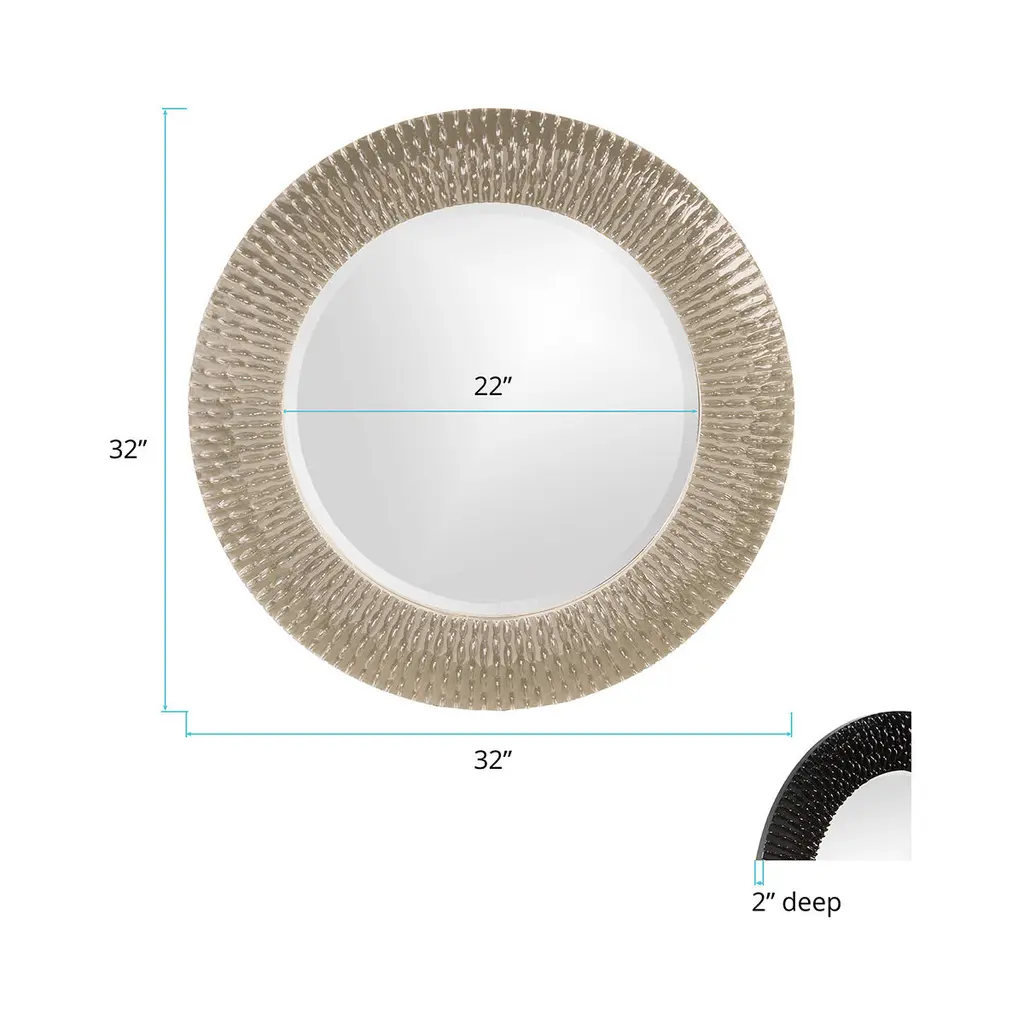 Bergman features a round frame characterized by a textured ribbed frame. It is then painted with our custom glossy nickel lacquer finish. It is a perfect focal point for an entryway, bathroom, bedroom or any room in your home. D-rings are affixed to the back of the mirror so it is ready to hang right out of the box! The Bergman Mirror is part of our custom paint program and is available in one of fourteen vivid colors. It is proudly painted in the USA.