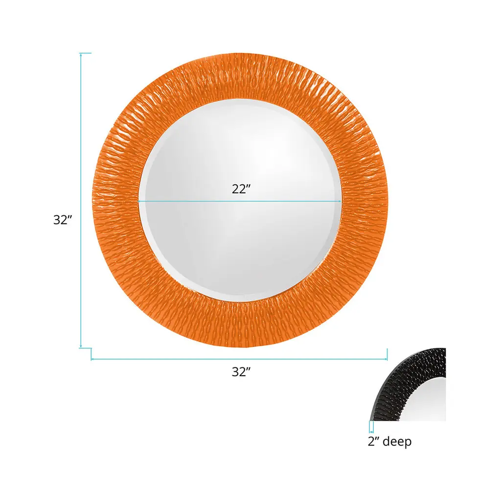 Bergman features a round frame characterized by a textured ribbed frame. It is then painted with our custom glossy orange lacquer finish. It is a perfect focal point for an entryway, bathroom, bedroom or any room in your home. D-rings are affixed to the back of the mirror so it is ready to hang right out of the box! The Bergman Mirror is part of our custom paint program and is available in one of fourteen vivid colors. It is proudly painted in the USA.