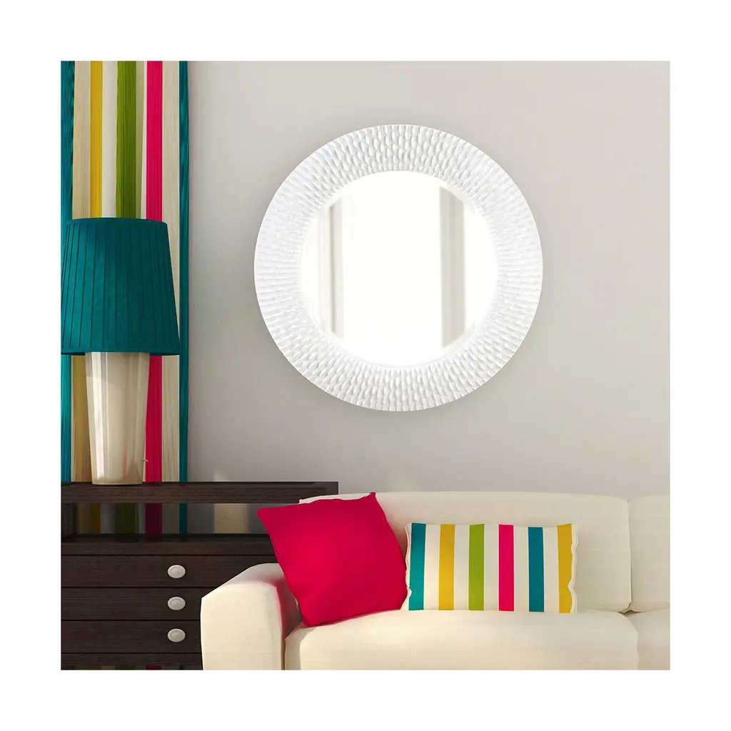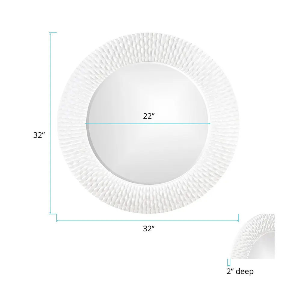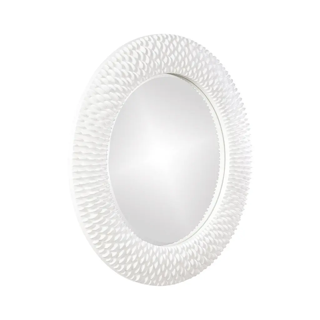 Bergman features a round frame characterized by a textured ribbed frame. It is then painted with our custom glossy white lacquer finish. It is a perfect focal point for an entryway, bathroom, bedroom or any room in your home. D-rings are affixed to the back of the mirror so it is ready to hang right out of the box! The Bergman Mirror is part of our custom paint program and is available in one of fourteen vivid colors. It is proudly painted in the USA.