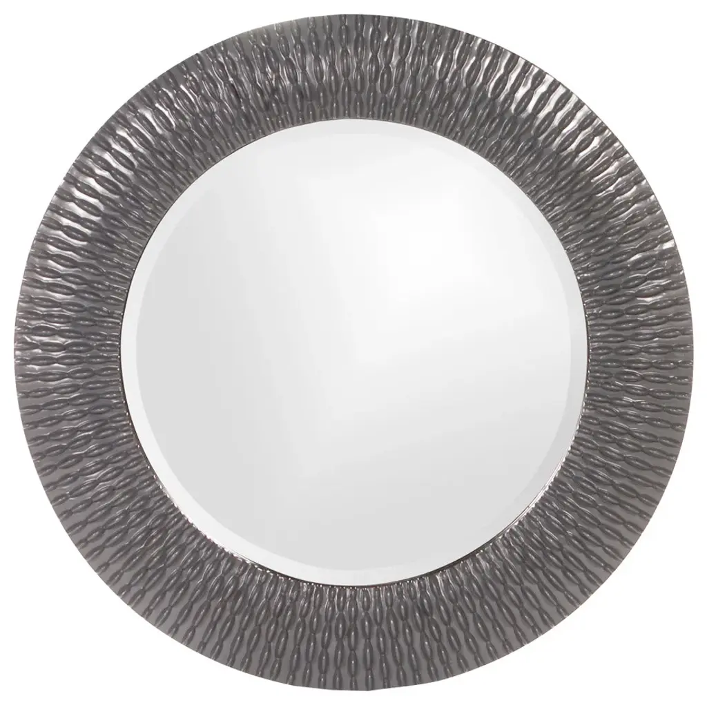 Bergman features a round frame characterized by a textured ribbed frame. It is then painted with our custom glossy charcoal gray lacquer finish. It is a perfect focal point for an entryway, bathroom, bedroom or any room in your home. D-rings are affixed to the back of the mirror so it is ready to hang right out of the box! It is proudly painted in the USA.