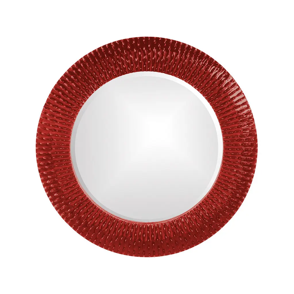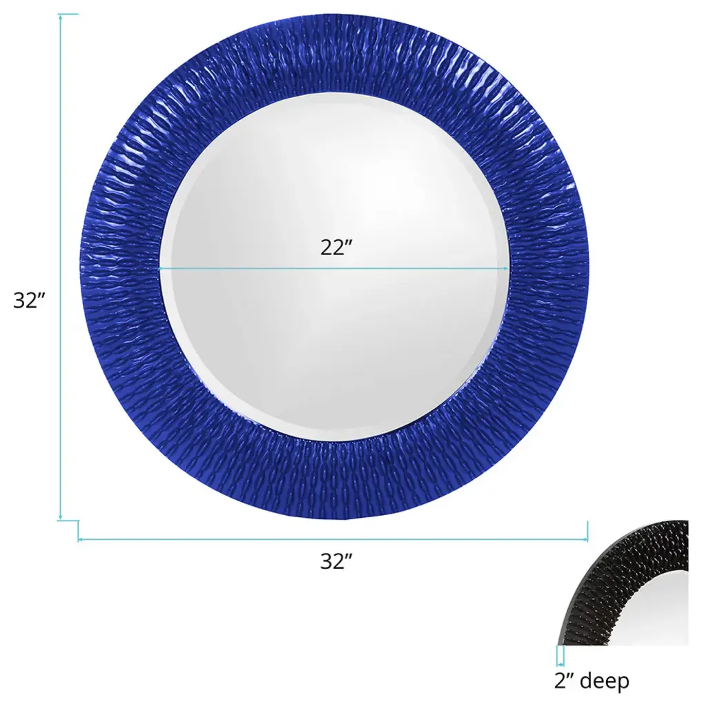 Bergman features a round frame characterized by a textured ribbed frame. It is then painted with our custom glossy royal blue lacquer finish. It is a perfect focal point for an entryway, bathroom, bedroom or any room in your home. D-rings are affixed to the back of the mirror so it is ready to hang right out of the box! It is proudly painted in the USA.