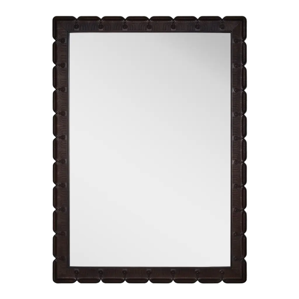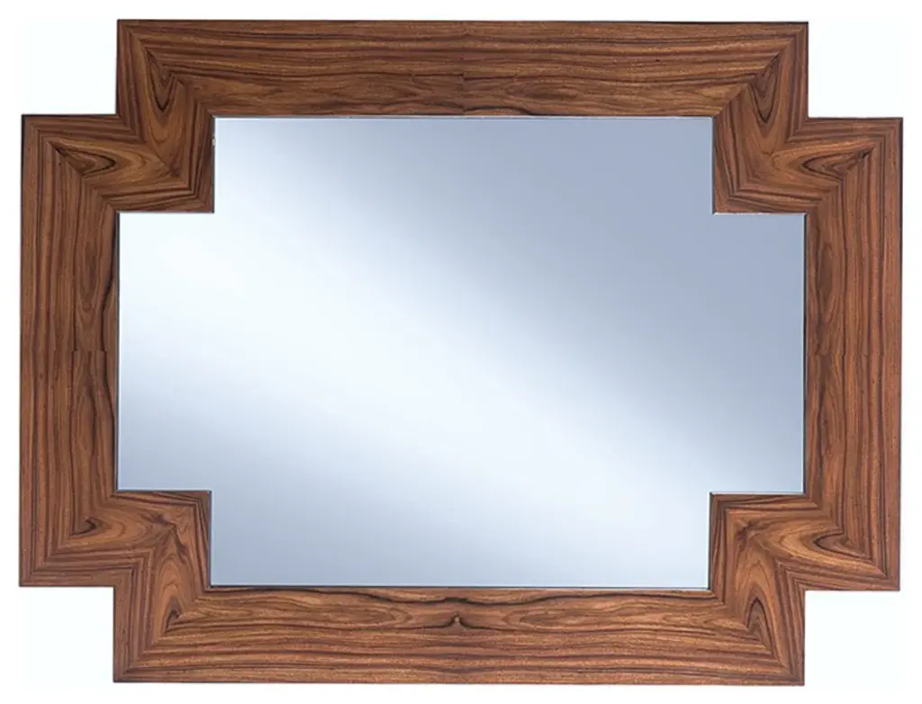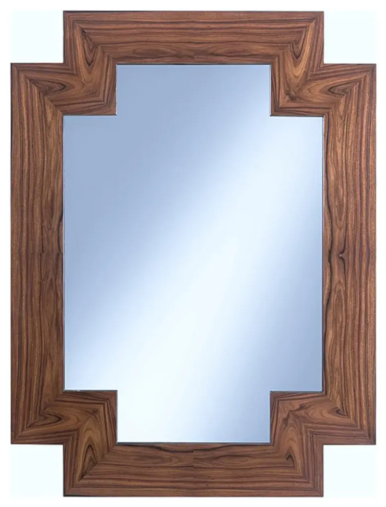 Both distinctive and beautifully simplistic, the Bernadette Rosewood Mirror will guarantee a great reflection. Gorgeous walnut stained rosewood is carefully matched at each joint to create a striking pattern from the natural wood grain. The angular shape of the mirror itself also brings a fresh take on the traditional rectangle. Annie, don''t get your gun, get the Bernadette Rosewood Mirror. 30W X 40H. Mirror can be hung as vertical or horizontal