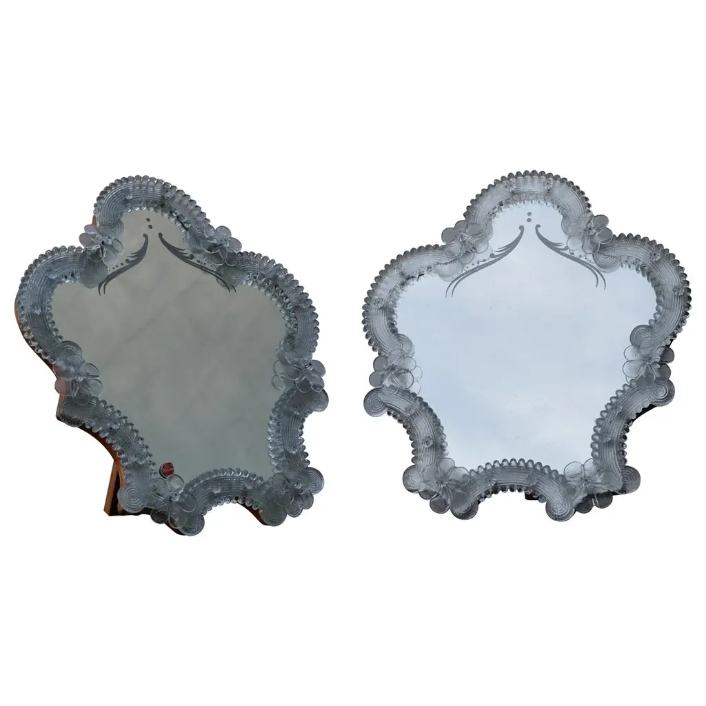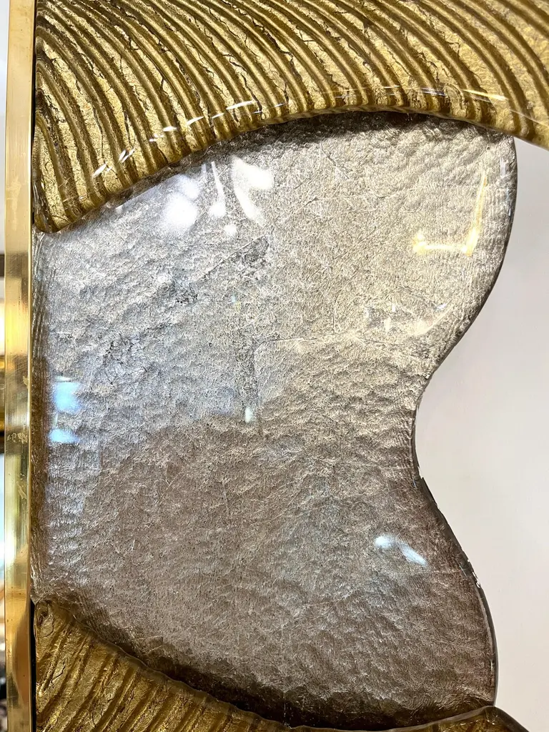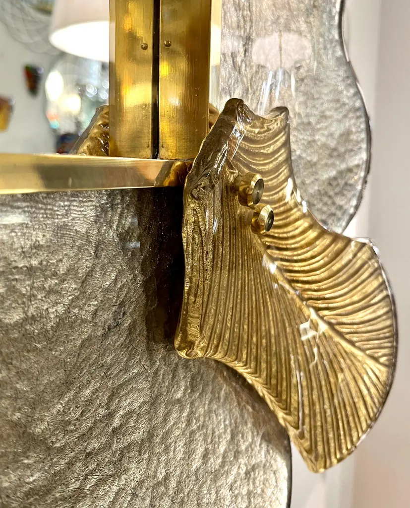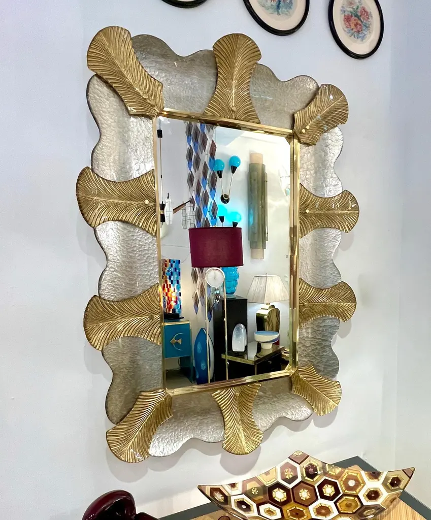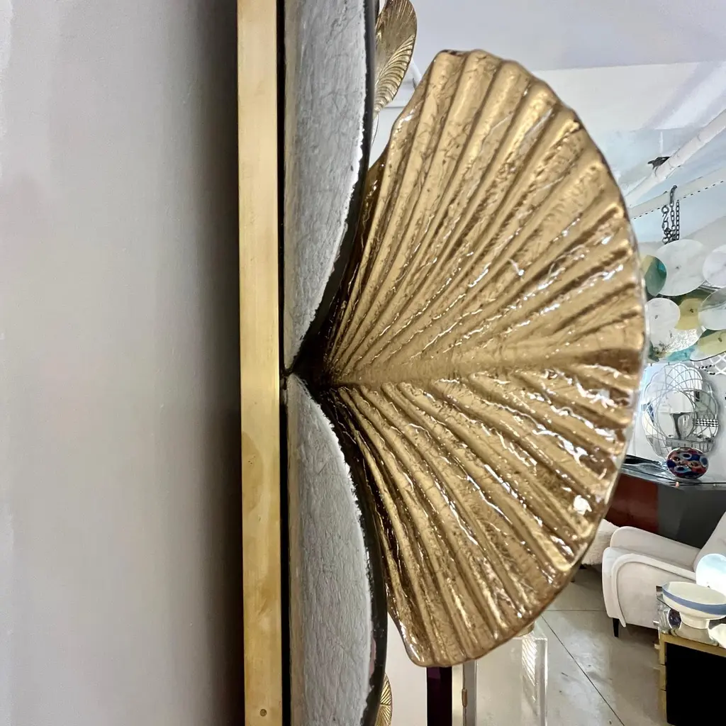 Bespoke Italian Pair Of Art Deco Style Curved Leaf Murano Glass Brass Mirror
