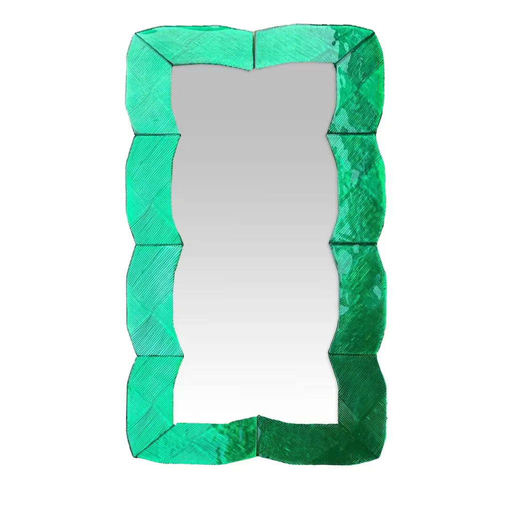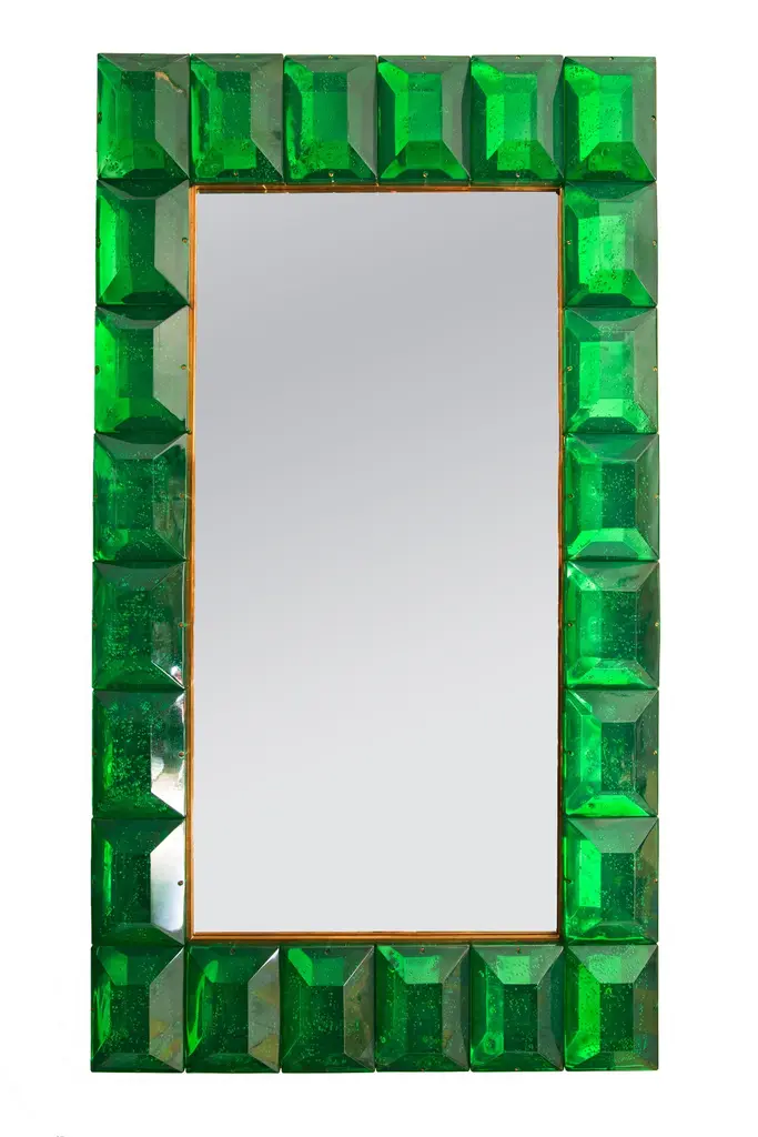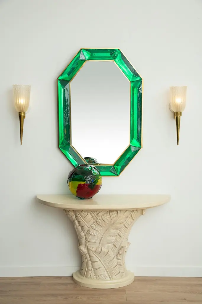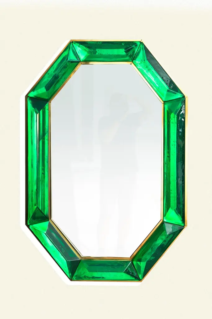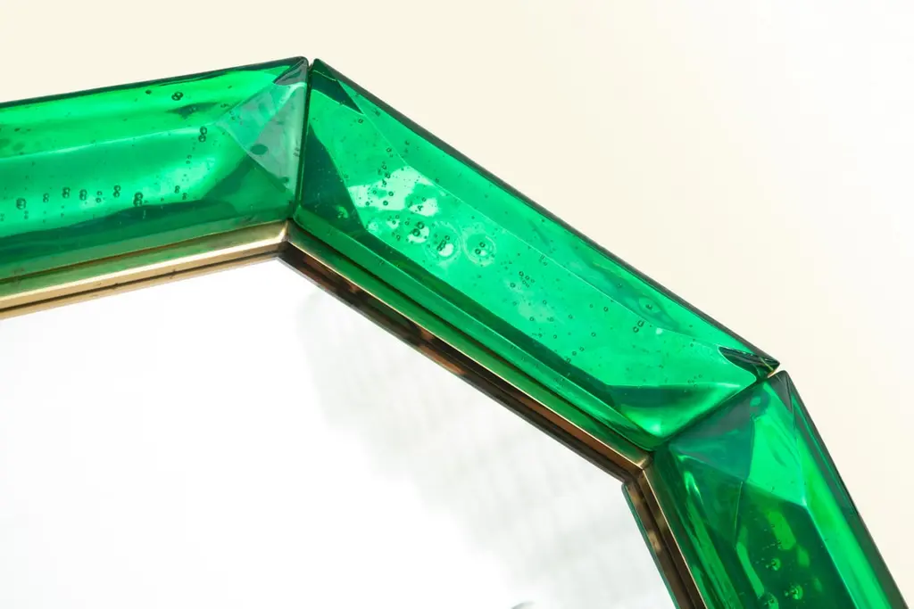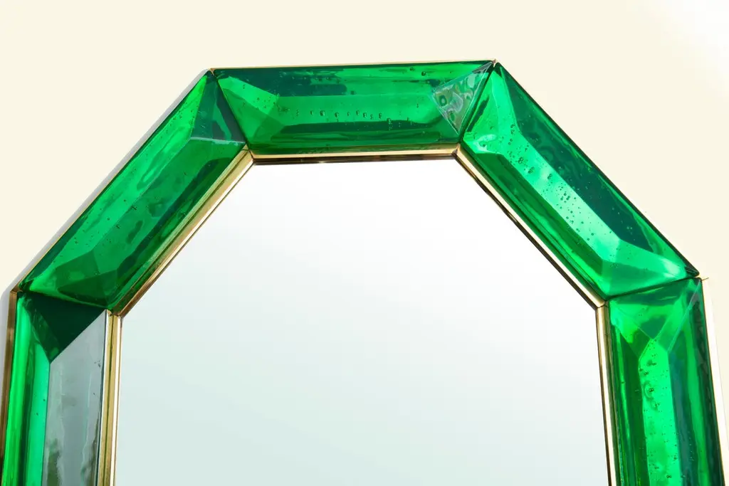 Bespoke Octagonal Emerald Green Murano Glass Mirror, In Stock