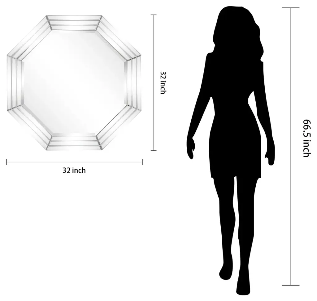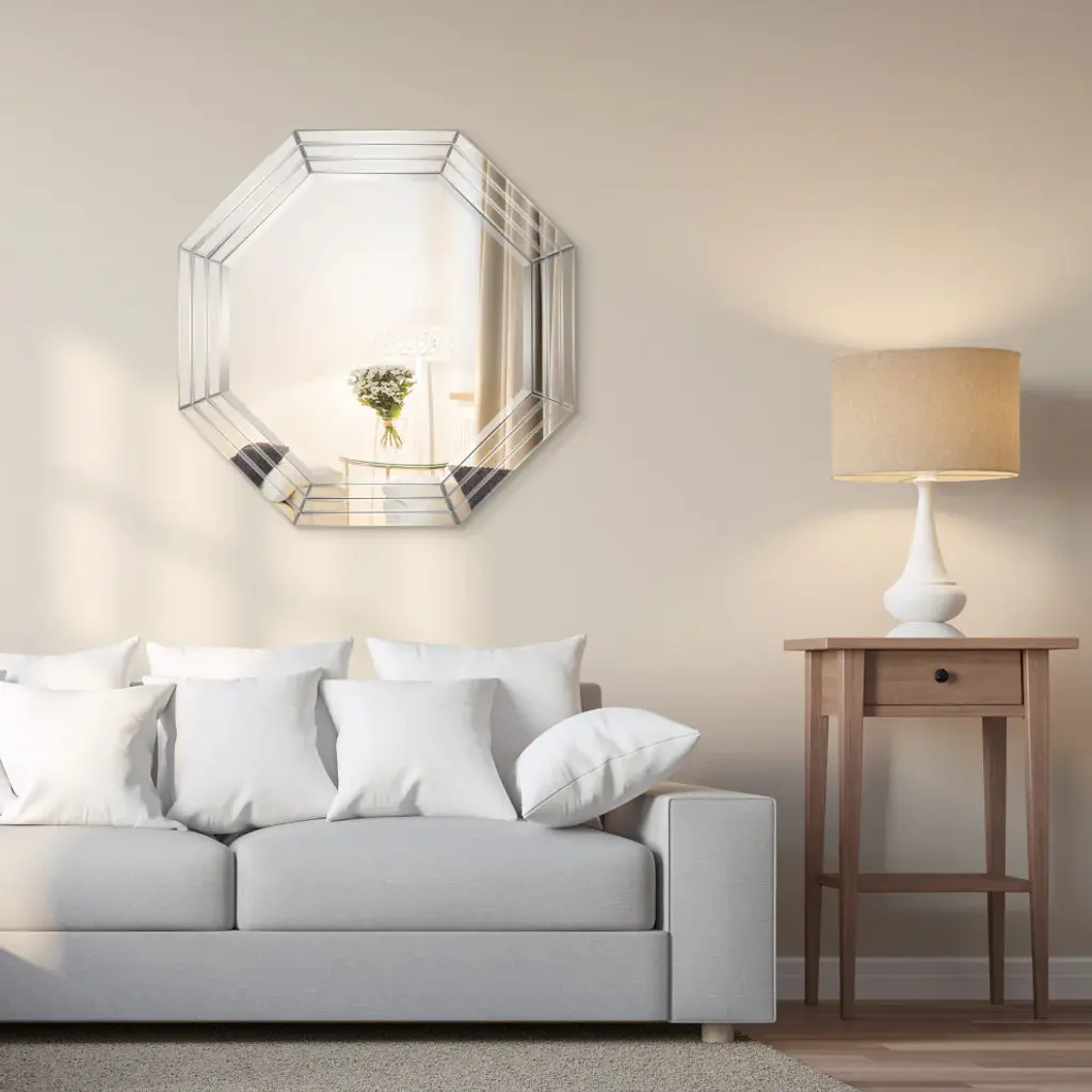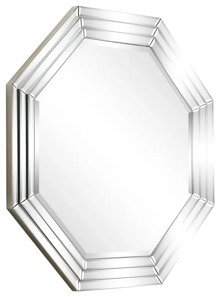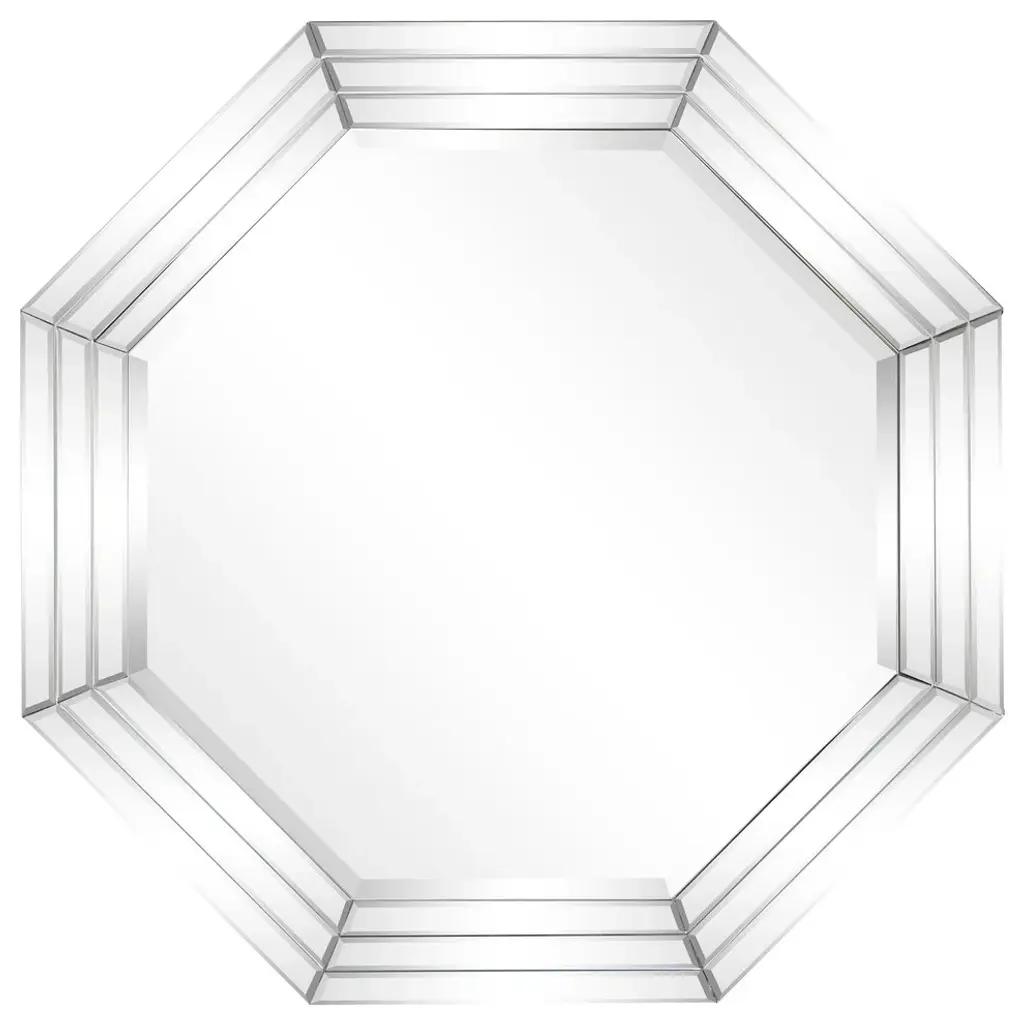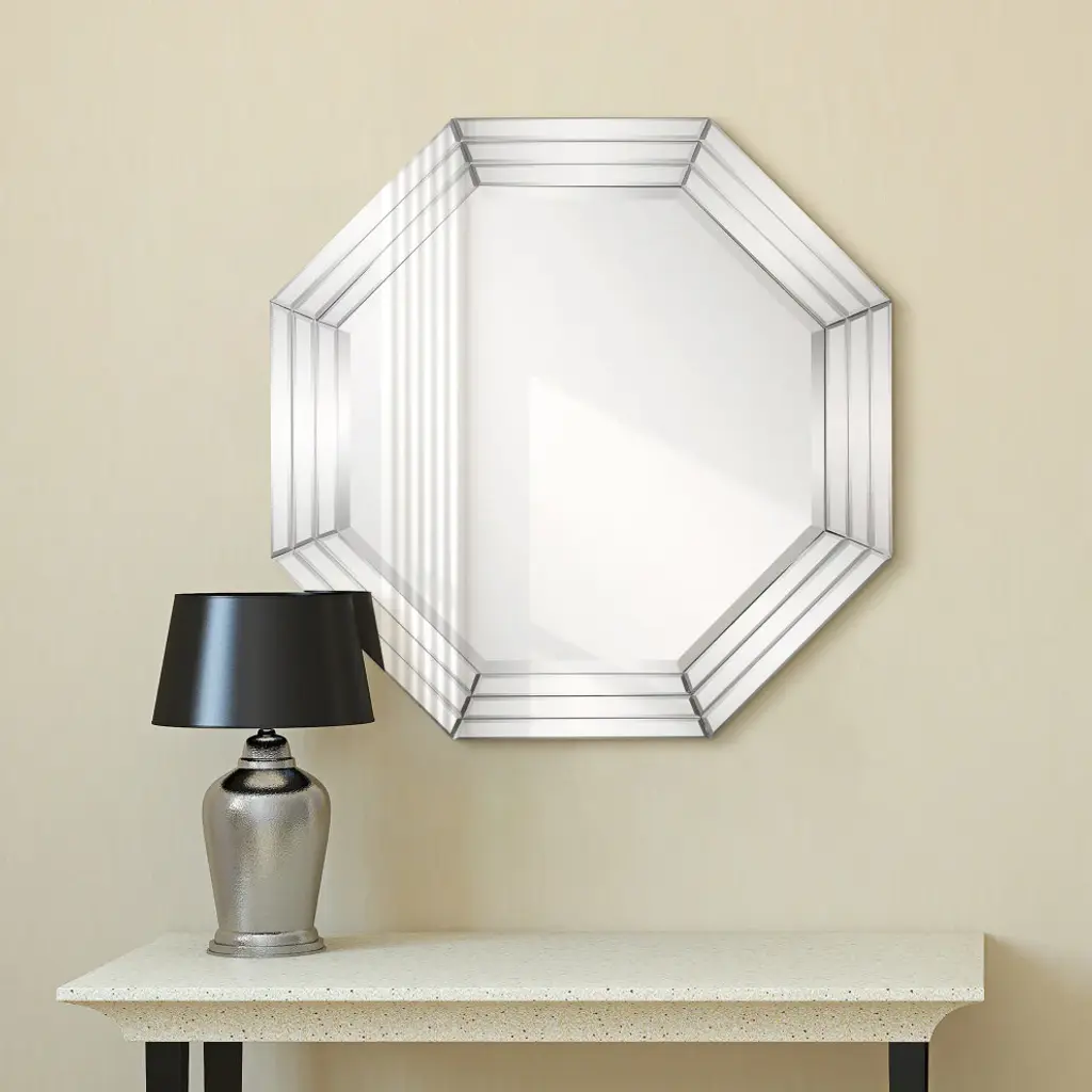 Beveled Multi Faceted Octagons Wall Mirror, 1" Beveled Center, Wood Frame
