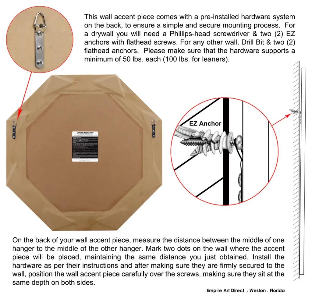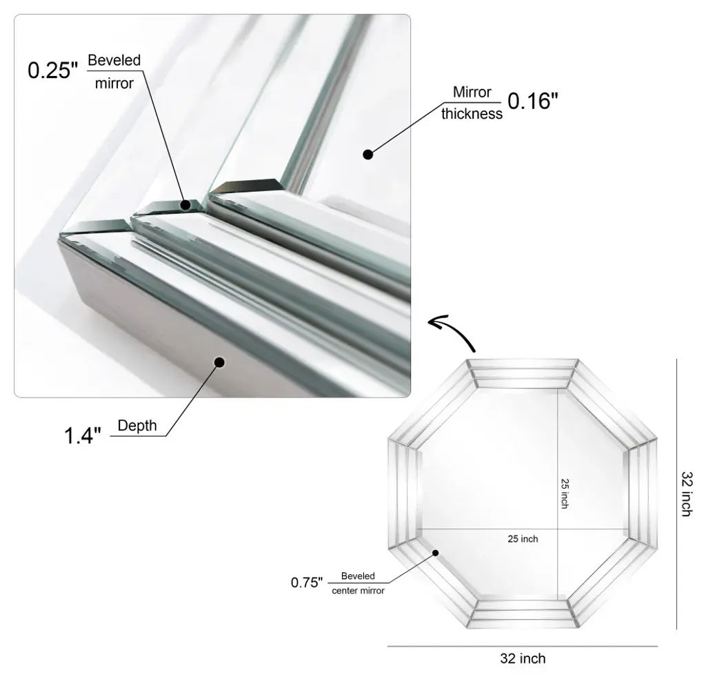 It has a frame made up of multi faceted mirrored bars. Each mirrored panel on the piece is beveled making for the most dazzling displays of light and reflections. It is a perfect accent piece for an entryway, bathroom, bedroom or any room in your home. Place this mirror in a room and make it look instantly larger and brighter! 2 hooks are affixed to the back of the mirror so it is ready to hang right out of the box!