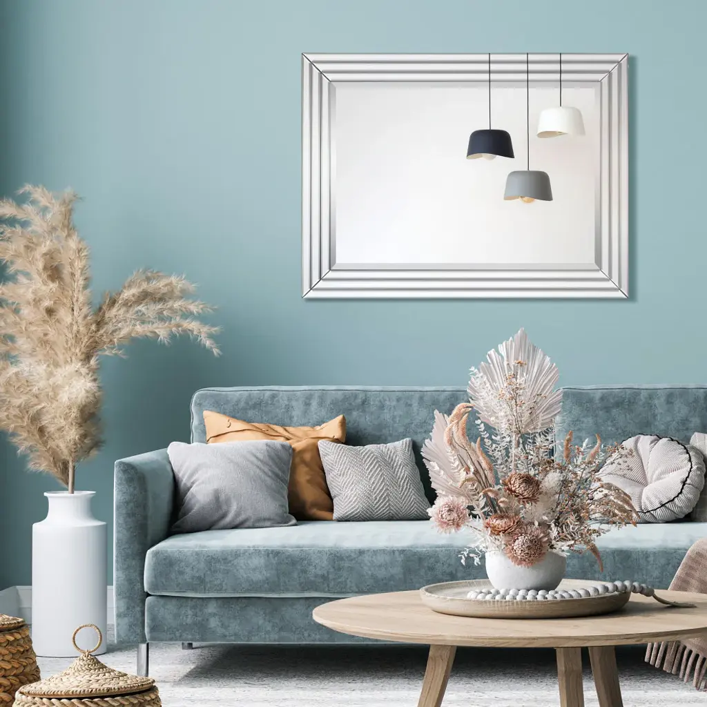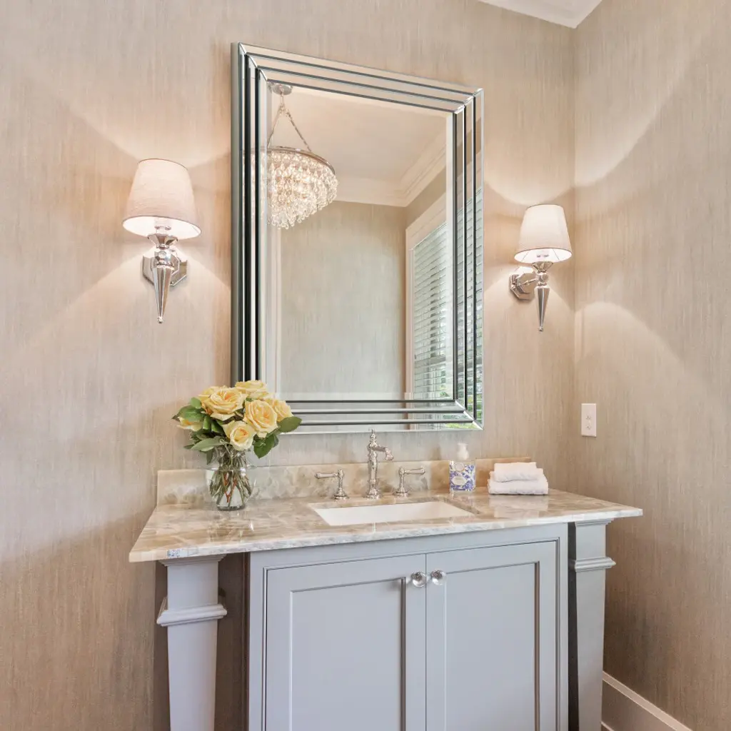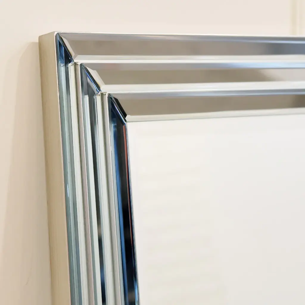 Beveled Multi Faceted Rectangle Wall Mirror, 2" Beveled Center, Wood Frame