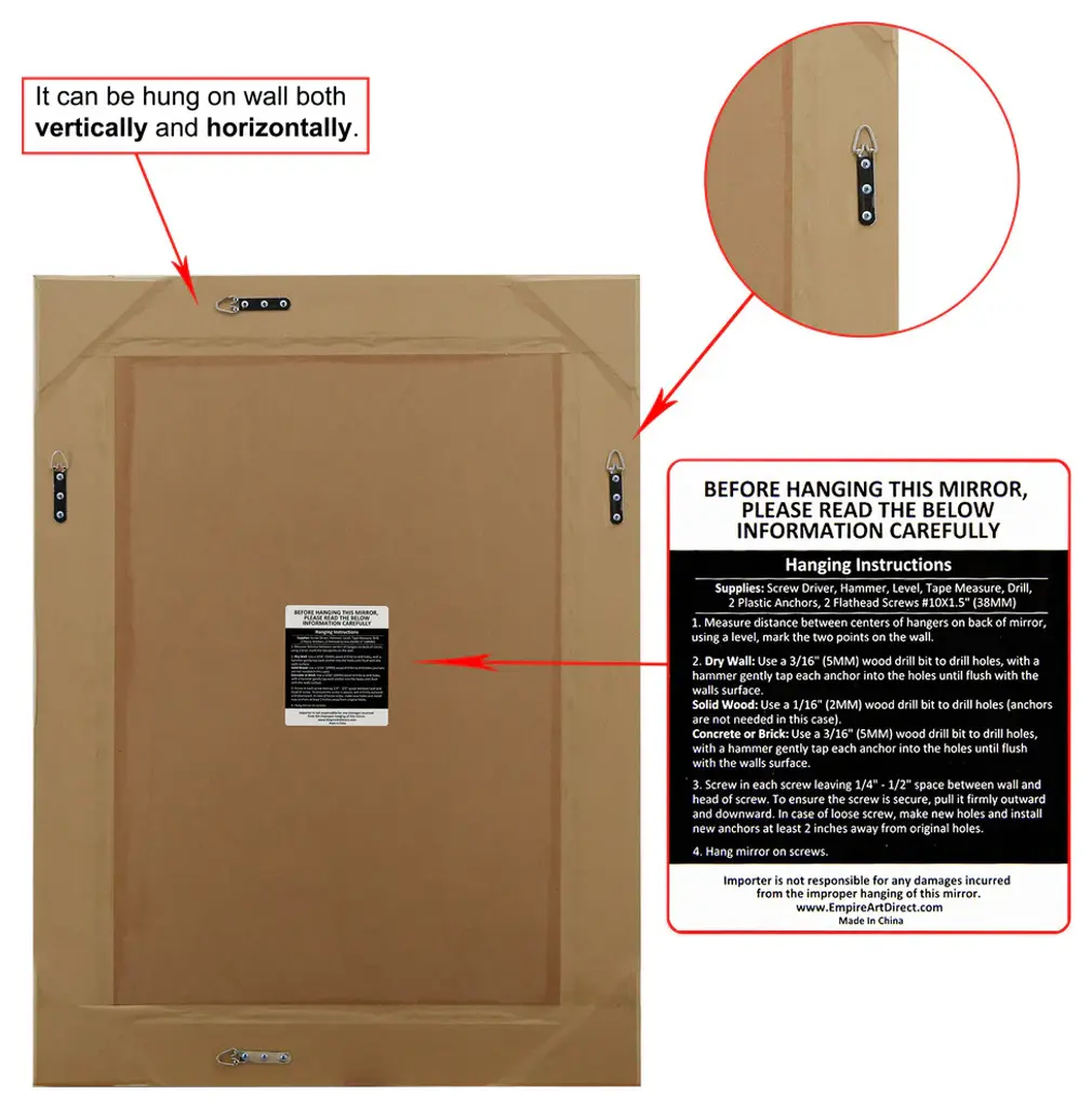 It has a frame made up of multi faceted mirrored bars. Each mirrored panel on the piece is beveled making for the most dazzling displays of light and reflections. It is a perfect accent piece for an entryway, bathroom, bedroom or any room in your home. Place this mirror in a room and make it look instantly larger and brighter! 4Hooks are affixed to the back of the mirror so it is ready to hang right out of the box in either a horizontal or vertical orientation!