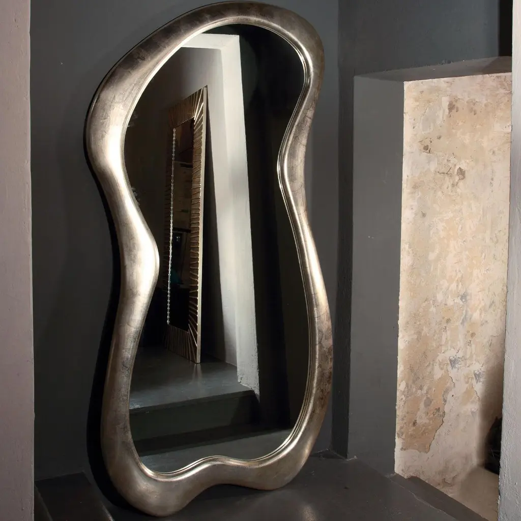 Designed with Avant-Garde style in mind, this wall mirror is an exercise in fluid lines and plush finishes that lend it a timelessly elegant look. Precious silver leaf covers the sinuous frame, for a sheen that is sure to stupefy at every glance whatever the decor. The artisan crafting process implies the singularity of every single piece.