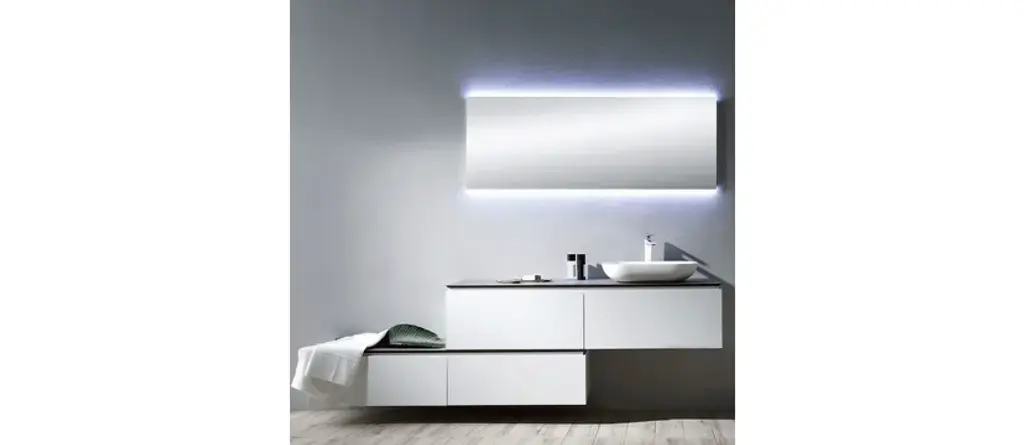 Update your bathroom with this modern German designed vanity set.By combining high-quality craftsmanship and the spirit of nature, this matt white Bianca vanity will be well-defined for your unique bathroom.Made from the high-quality MDF and MFC materials, 8-level hardness artificial stone basin combination, this double level vanity will serve you for a lifetime. The rail used is corrosion resistant stainless steel, with a heavy-duty self-closed sliding feature.Moreover, the key advantages of the cabinet are its anti-corrosion, impact resistant, anti-slip, non-porous features.This modern LED mirror Bianca will open up your bathroom with its elegance, LED illuminated lights from top and bottom, clear silver color and perfect shaped corners.Featuring a beautiful piece of decor and functionality you can easily make an evident difference in your bathroom with this small change.Features:Cabinet Material: 52% MDF, 48% MFCLow Noise and Invisible Hinges DesignAnti-Corrosion, Impact Resistant, Anti-Slip, Non-PorousCabinet Dimensions: 59" x 19.69" x 13.77", Mirror Dimensions: 59" x 22" x 1"Certification: SGS EPA TSCA Title VILED Illuminated Mirror