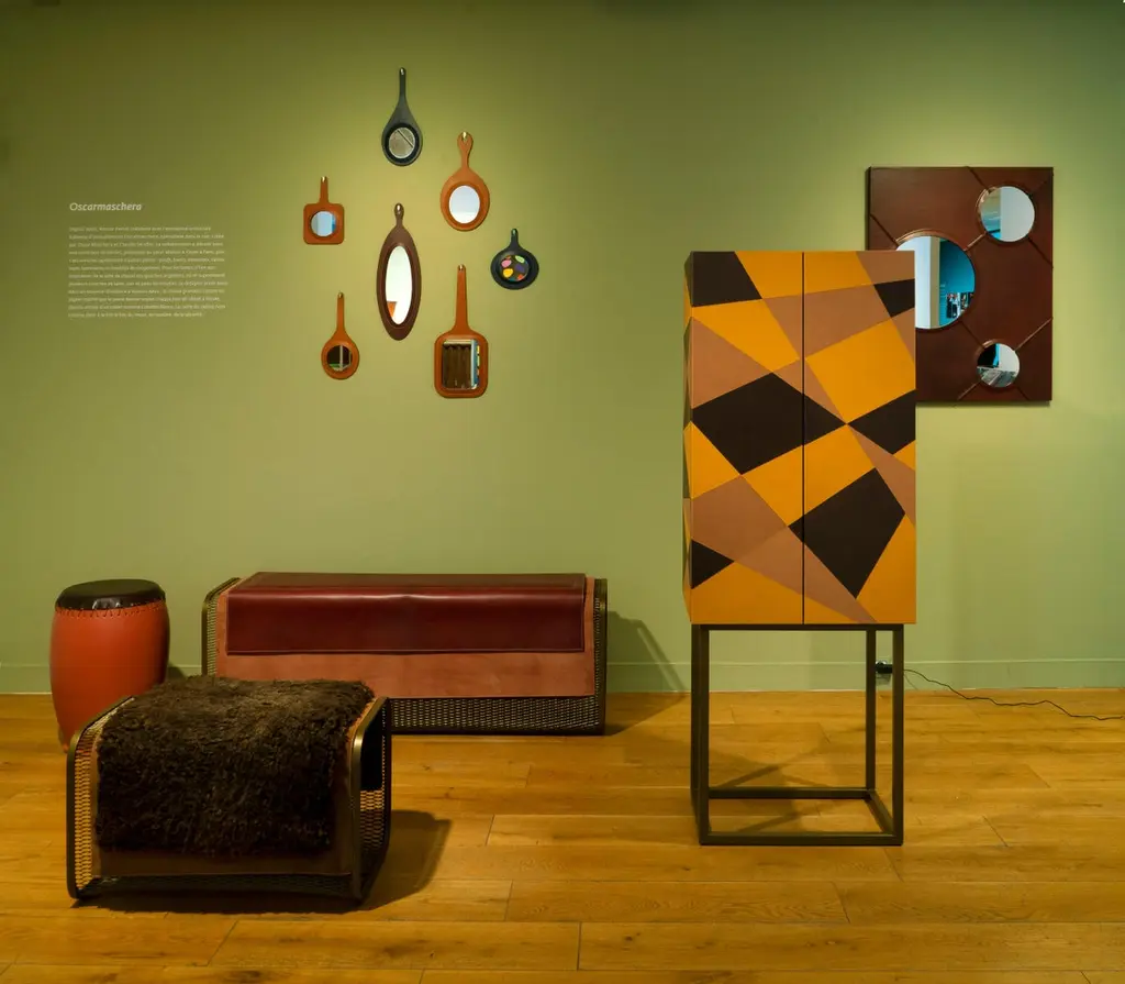 Big Day Wall Mirror Equipped with Stainless Steel Hook by Oscar MascheraDimensions: W 24 x H 79 cm.Materials: Leather, stainless steel, and mirror.“Mirrors should reflect a little before throwing back images.”Jean Cocteau, Le Sang d’un poète (1930)“This object has always fascinated me. Is it there simply to reflect our image, or is it looking at us? It envelopes us, searches for us, and constantly questions us. At OSCAR MASCHERA I looked for what leather could bring to this object and how it could become its supporting structure.” — Nestor Perkal.Our work is research: we give our fantasy free rein when experimenting and manipulating an object in leather.The researcher proceeds and invents. Given a road, it goes all the way along it, back and forth, and then begins to visit its surroundings. It is the same for us. We explore the leather: creating corners, cutting edges, and joining the parts. Every object is an invention, because it is a stage in the research, and never the endpoint of the production.Like footprints in the sand, our objects represent a story made up of different chapters. Every element of this story, every collection, has its own independent life. Foglia Couture, Caballito Blanco, Miroirs et Tapis, Bombo, Stecco, Isole, Pouf!, Caballito Blanco#Blanco. Every name in this sequence is a step, a track, a memory.But what better expresses the idea of our project is the whole set of collections, the direction that they all take as one, like a slipstream along the coast.Inventing as a job is first and foremost a pleasure. Combining the materials, folding the lines, choosing the colours, modelling, and constructing. And above all, simplifying, letting the objects be free to invent a new space, observing how they come to modify what they are next to: a room, a place, the everyday routine.Imagination creates a horizon. The designs are sensed in an ideal world. The next step, the one that allows you to see the images composed in the objects, is the heart of our work. Experience concretizes what is initially imagined, and all our production represents this operation.