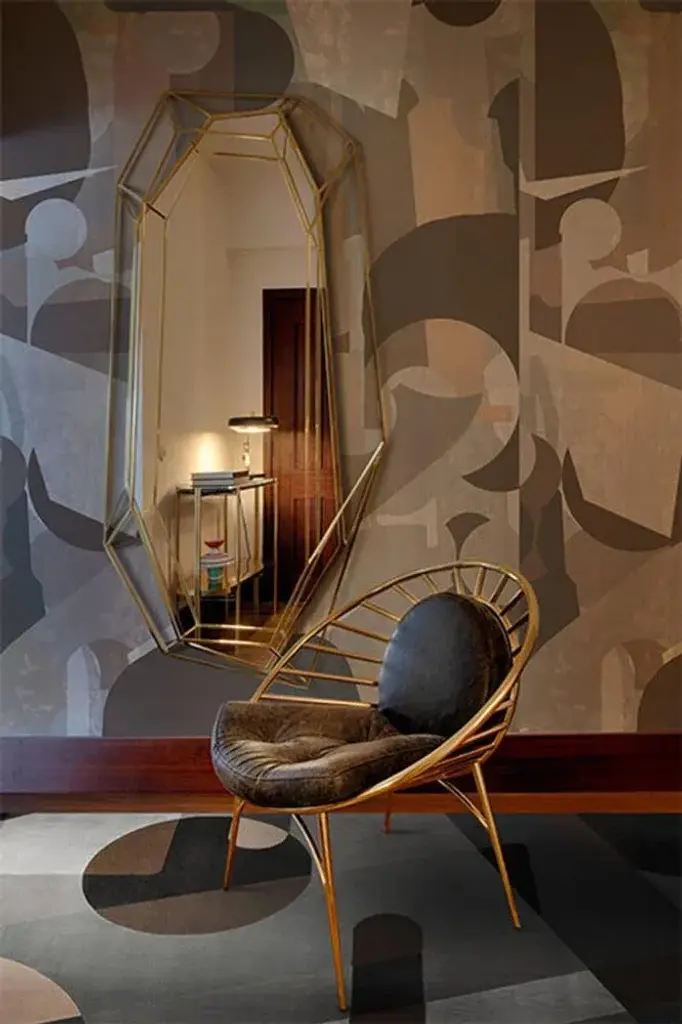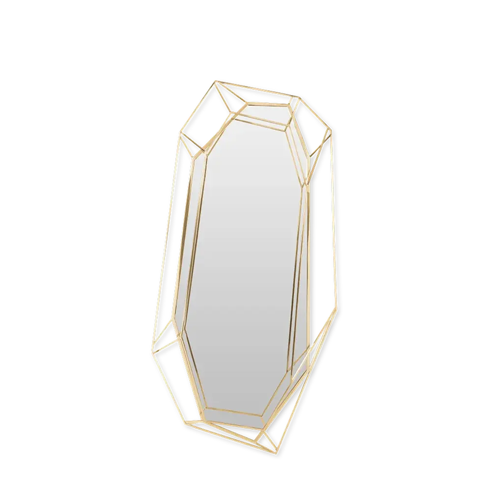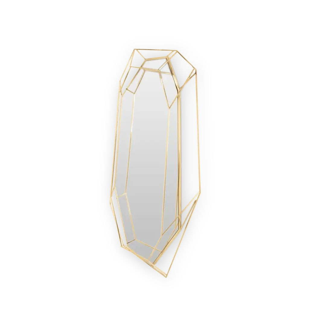 A full length version of the diamond shaped mirror which will add a luxurious and rich element to any interior. Crafted in a polished brass structure it produces a tall sleek design, merging geometry and design in the same object.