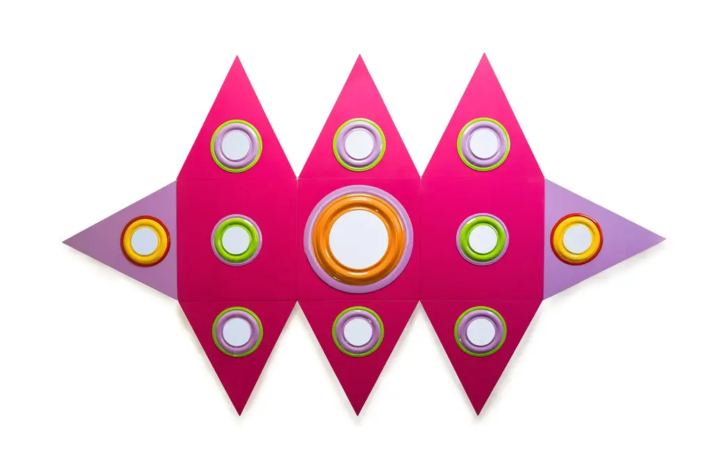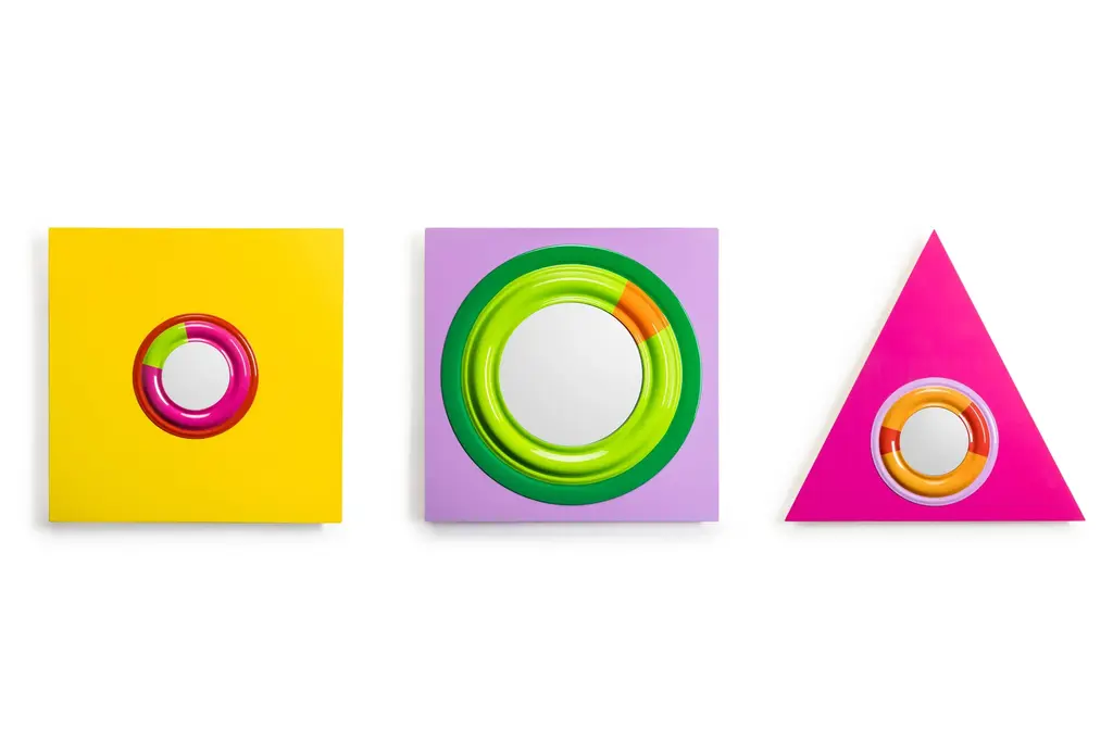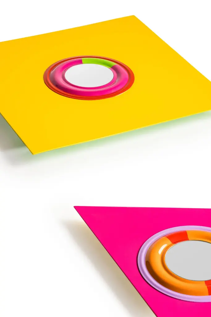 Nitya is, as its name says, an eternal mirror. A perfectly balanced shape and a timeless design; it is the focal point of every space. Bindoo is a collection of modular mirrors enclosed in graphic compositions of circles, triangles and squares with different color palettes inspired by traditional Indian clothing and made of pure aluminum. This artistic collection originates from Indian philosophy: Bindu, Sanskrit word meaning "point", symbolizes the source of all creation. Labeled by Maker