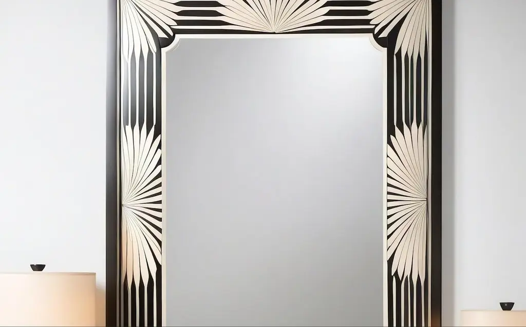 Black And White Wall Mirror Inspired By Art Deco, Handcrafted By Artisanal