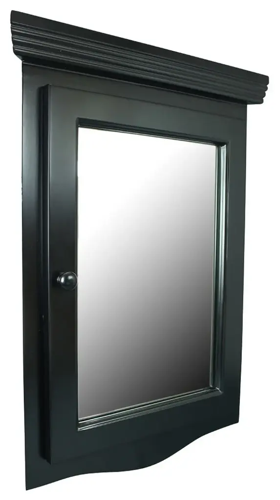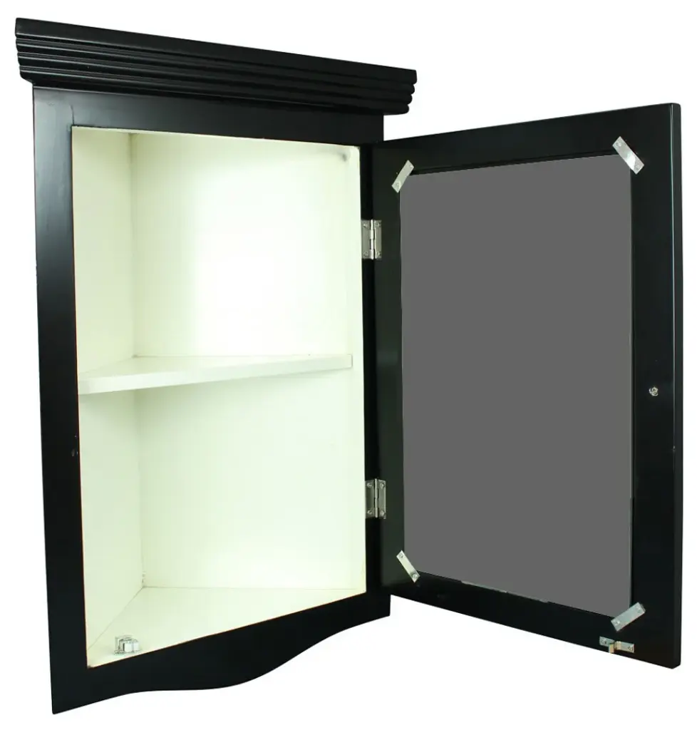 Black Bathroom Wall Mount Corner Medicine Cabinet Solid Wood Recessed Mirror