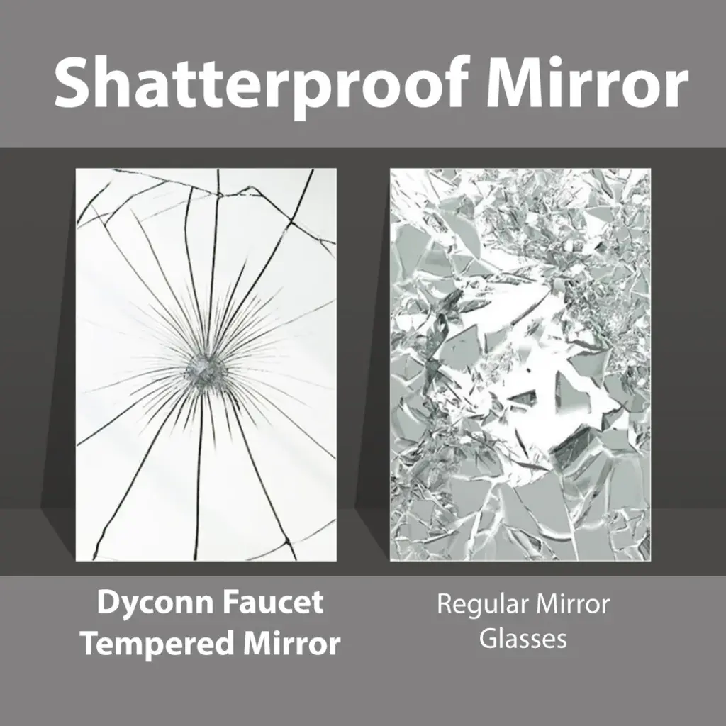 The Dyconn Faucet LED mirror is one of the best choice to make your room modern and elegant. Now Dyconn Faucet brings tempered glass to bathroom mirror design. The highest quality silver-backed tempered glass mirror features shatter-proof, explosion-proof. Safer to use and more durable. Temper glass is widely used in Aviation, Construction field. This LED mirror provides task-specific dim daylight illumination for your cosmetic, hygiene and dressing needs. Dyconn Faucet designs a series of bathroom lighted mirror, please browse our store for more mirror options.