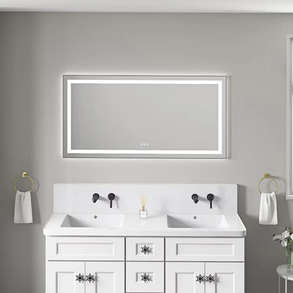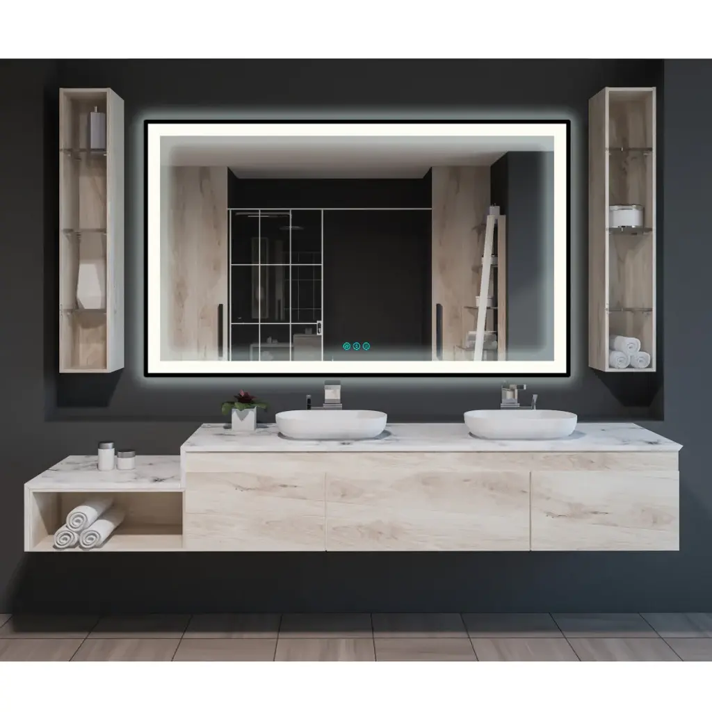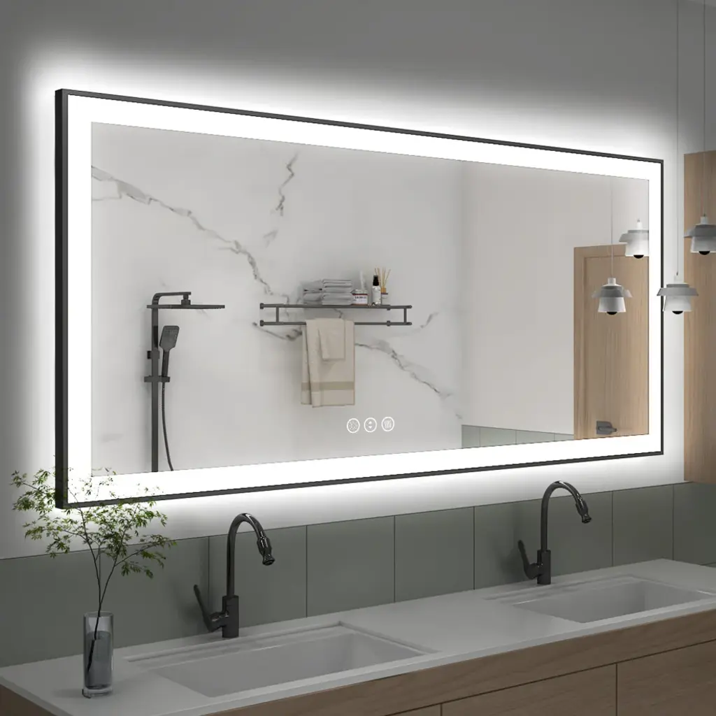 Black Frame Wall Mounted Backlit Led Bathroom Vanity Mirror (72"w X 36"h )