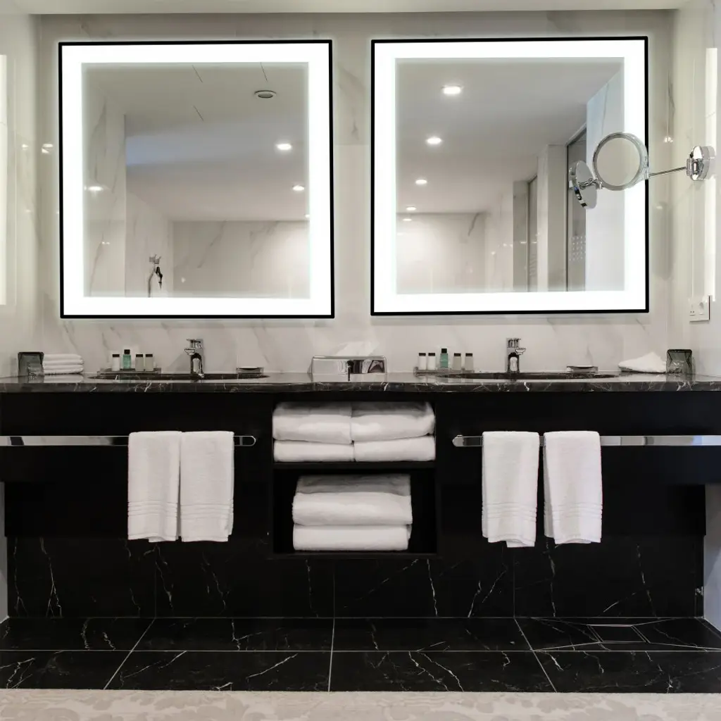 The Dyconn Faucet LED mirror is one of the best choice to make your room modern and elegant. Now Dyconn Faucet brings tempered glass to bathroom mirror design. The highest quality silver-backed tempered glass mirror features shatter-proof, explosion-proof. Safer to use and more durable. Temper glass is widely used in Aviation, Construction field. This LED mirror provides task-specific dim daylight illumination for your cosmetic, hygiene and dressing needs. Dyconn Faucet designs a series of bathroom lighted mirror, please browse our store for more mirror options.