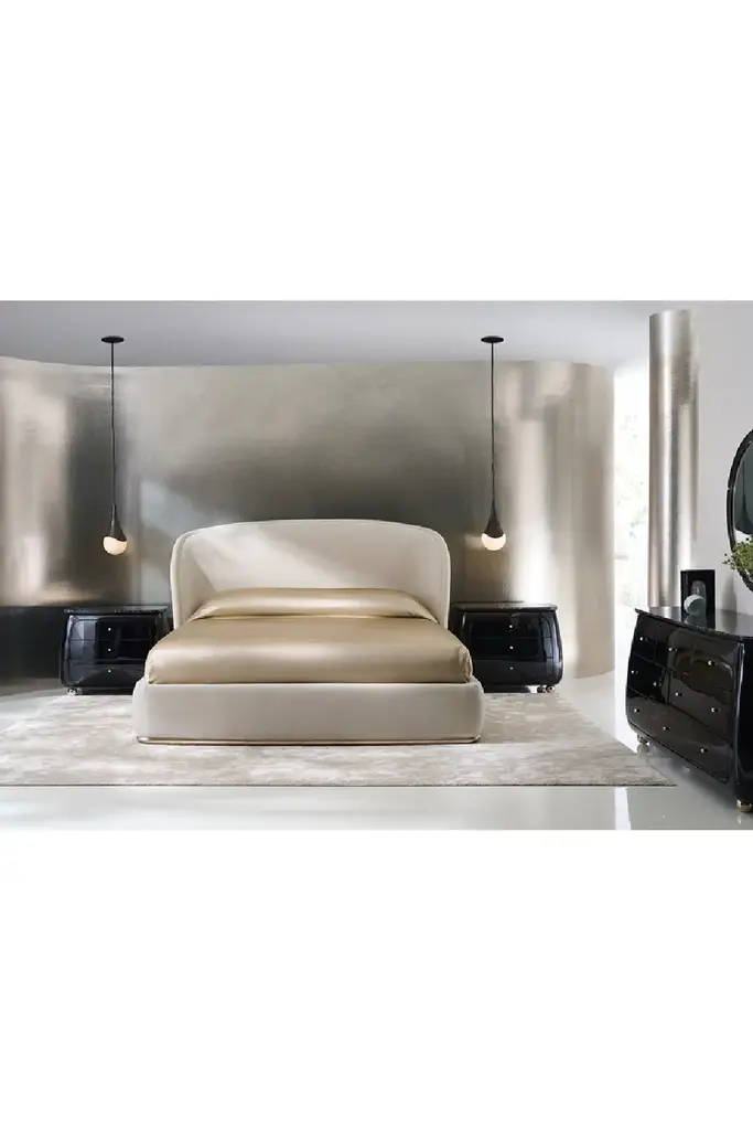 This one-inch beveled round mirror has been dressed up with highly figured black and grey stone inserts framed in Whisper of Gold metal. Little touches like the rounded edges of the marble inserts make this a special piece for many rooms.