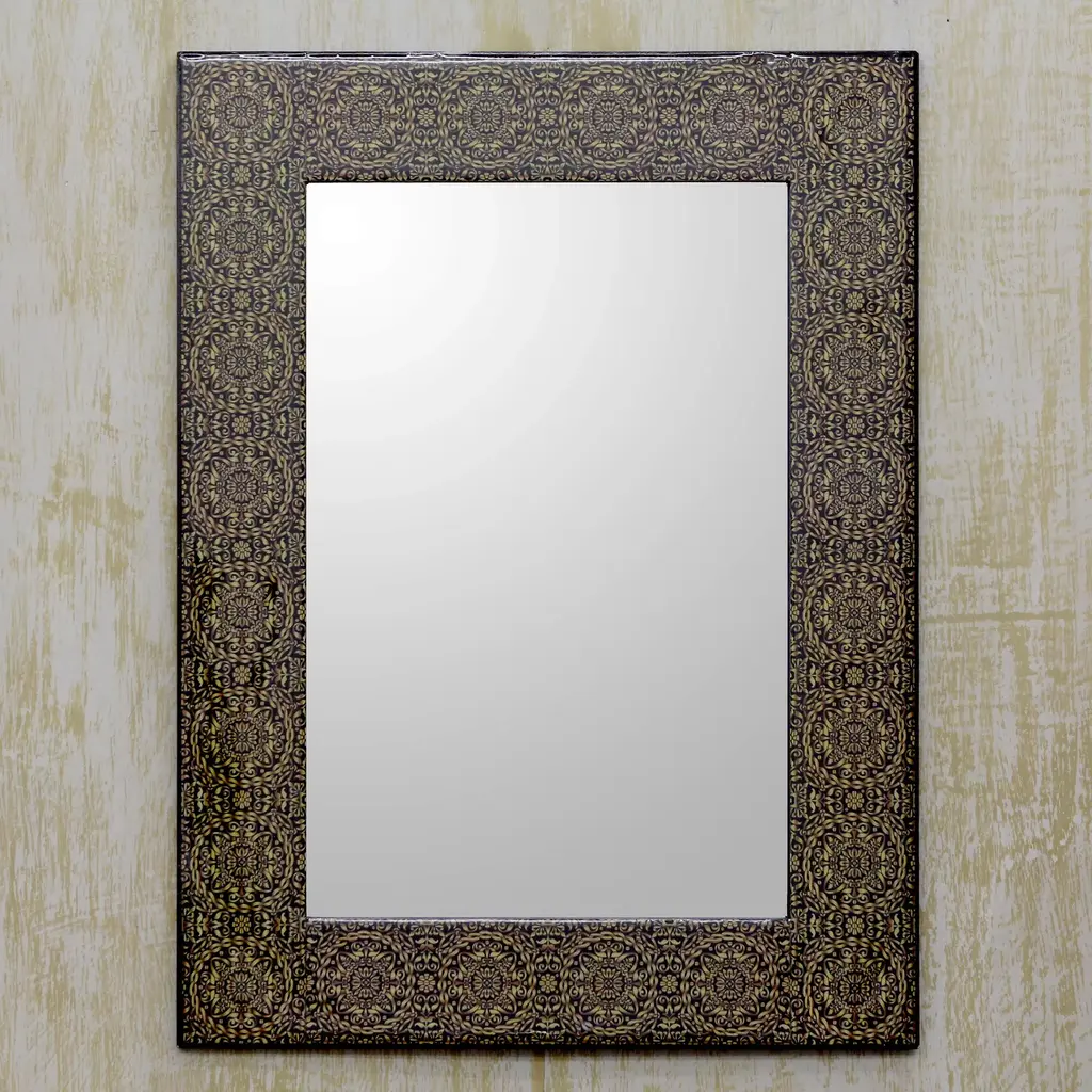 Blackened Bronze Iron Etched Mandala Wall Mirrors 3 Piece