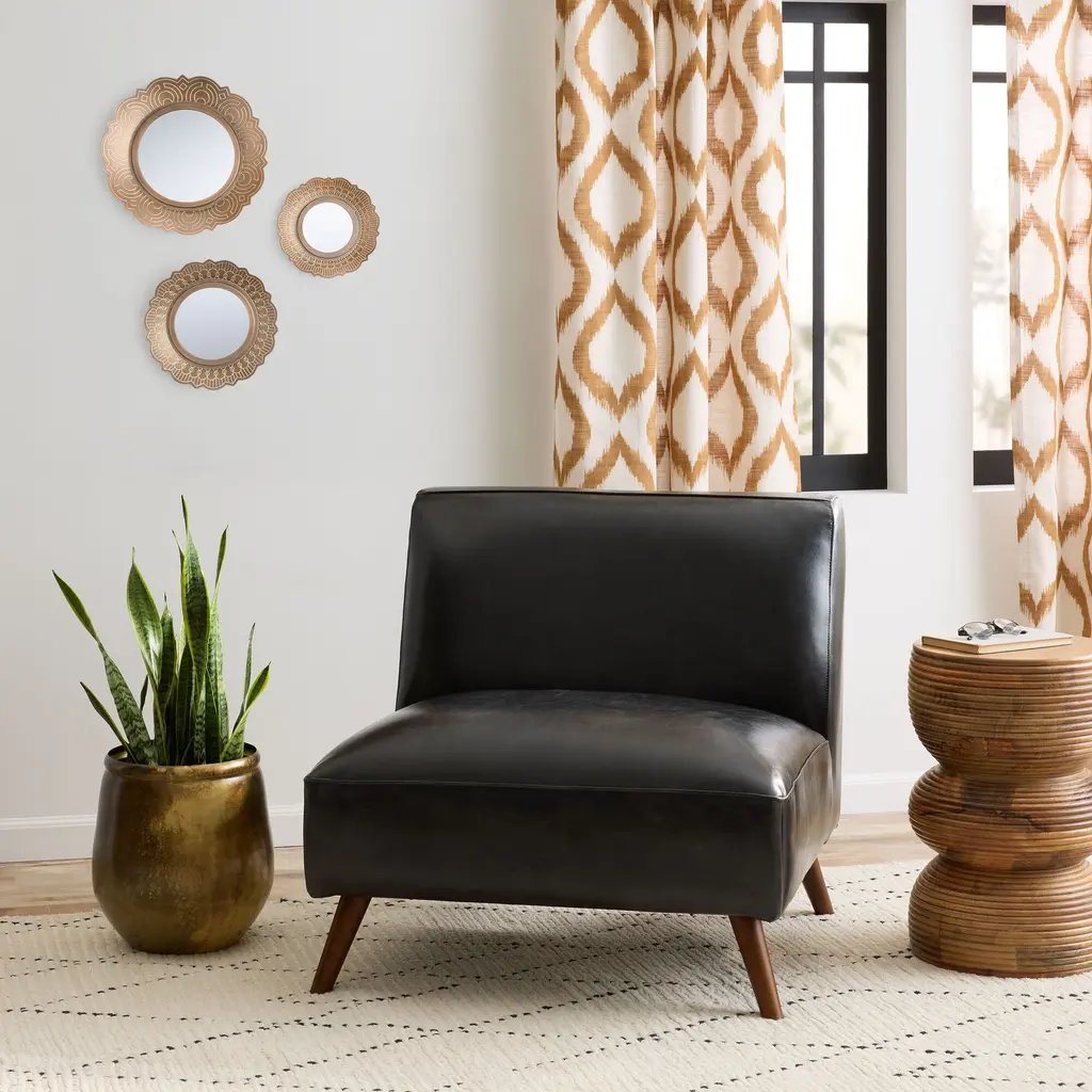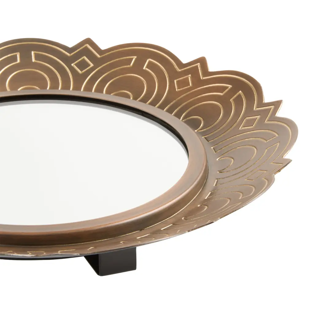 Dimensional, blackened iron frames are etched by hand with a thin bronze mandala design in our exclusive trio of round wall mirrors. Ready to hang, this set includes small, medium and large sizes in two patterns that can be arranged in any configuration to suit your home decor. They are an effortless way to introduce depth and light to interior spaces and they pair beautifully with houseplants, pottery and textile art.