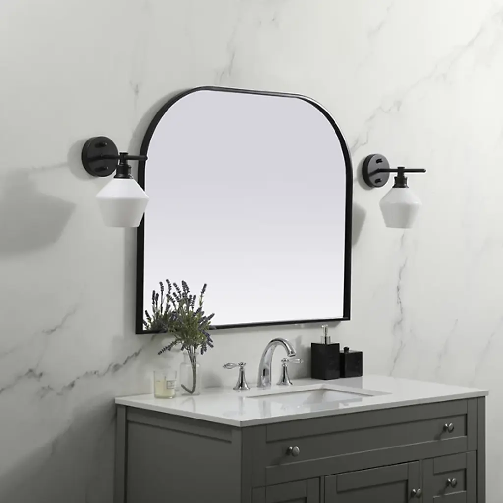 The Blaire Mirror from Elegant Lighting adds a stylish focal point to your mantel, serving as an anchor piece to complement smaller accents. Its reflective surface enhances light, making spaces appear larger and brighter. Featuring square bottom edges and a rounded top, this mirror brings a fresh twist to the traditional mirror design, elevating any room.