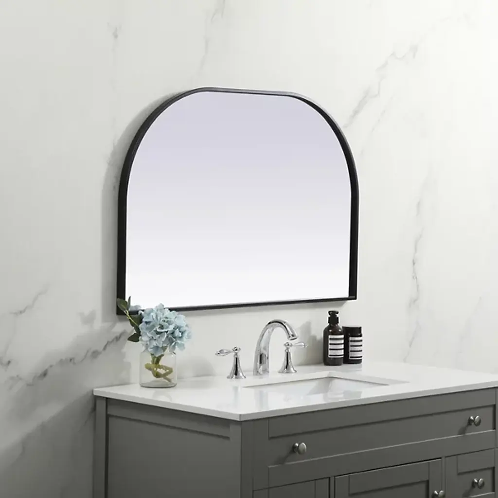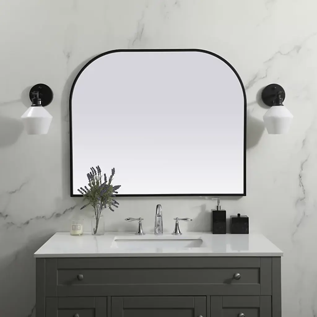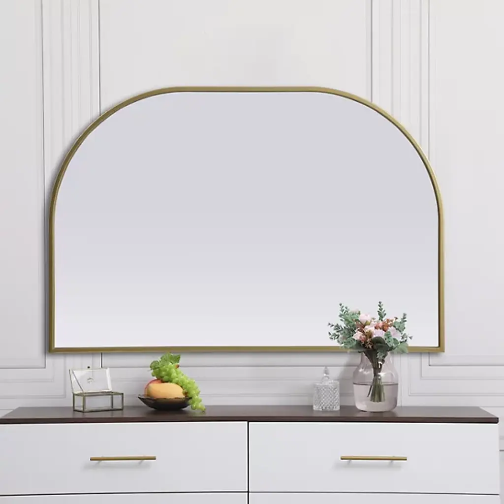 The Blaire Mirror from Elegant Lighting adds a stylish focal point to your mantel, serving as an anchor piece to complement smaller accents. Its reflective surface enhances light, making spaces appear larger and brighter. Featuring square bottom edges and a rounded top, this mirror brings a fresh twist to the traditional mirror design, elevating any room.
