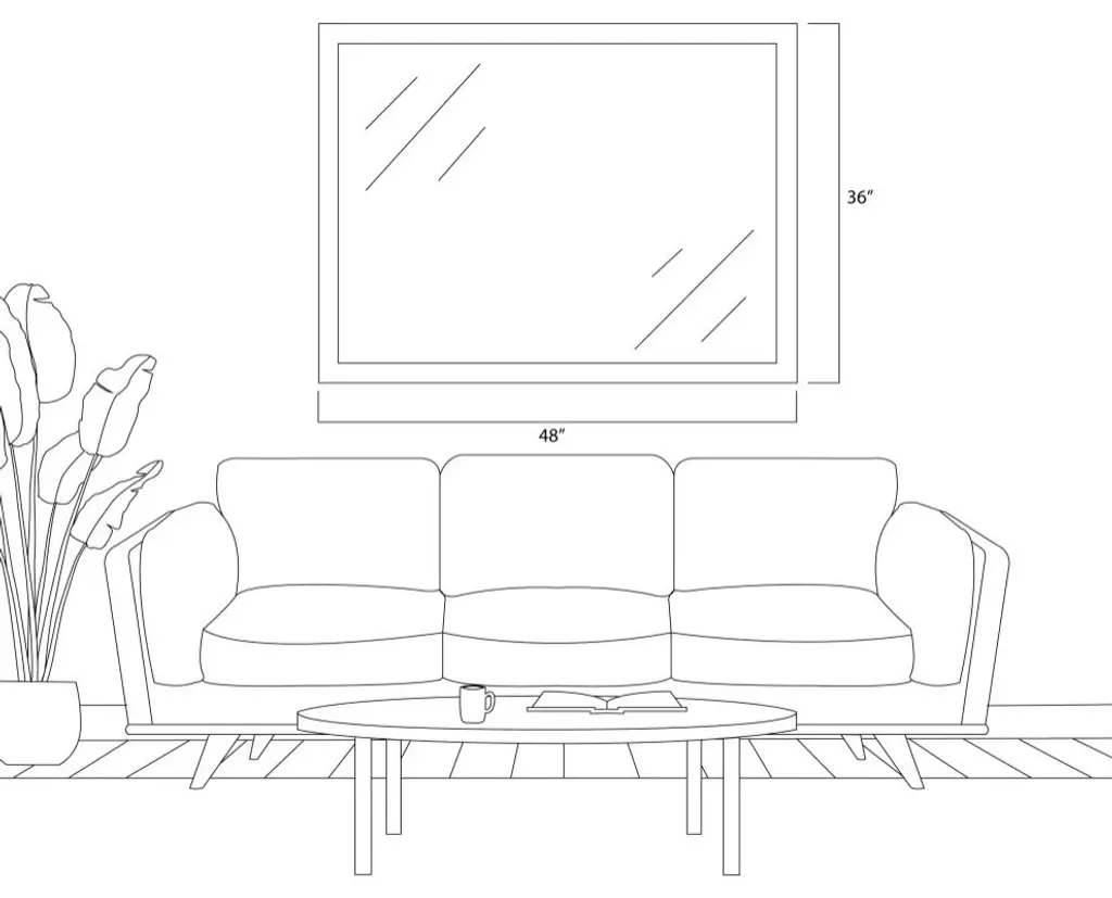 Like the edges of an old Polaroid picture, the frame of the Blanco framed mirror adds a pop of white to draw attention to your custom mirror. The edges are aged in color, giving this frame a bit of an antique feel. The frame is tall along the outside edge, and it slopes gently down to the inner edge, which is beveled for added depth.Hangrail for installation will be applied on the width of the frame. All assembly hardware and instructions will be included. Additional hangrails are included if the opposite orientation is desired for installation. The dimensions displayed are the final outside dimensions of the frame, including the mirror. CATII safety backing applied on all mirrors. Approved for high-moisture areas such as bathrooms.
