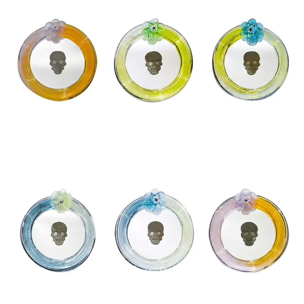Artemest collaborated with Ongaro & Fuga and artist Bradley Theodore on this piece to be showcased at the exhibition BLOW: Bradley Theodore Meets Murano. This mirror has been handmade with a special ombré color palette, achieving a unique effect. Bradley Theodore's signature skulls have been fully engraved by hand with a traditional diamond wheel, a mark of exceptional craftsmanship. Please note that this piece has been part of the BLOW collection by Bradley Theodore on show at Artemest Galleria in New York.